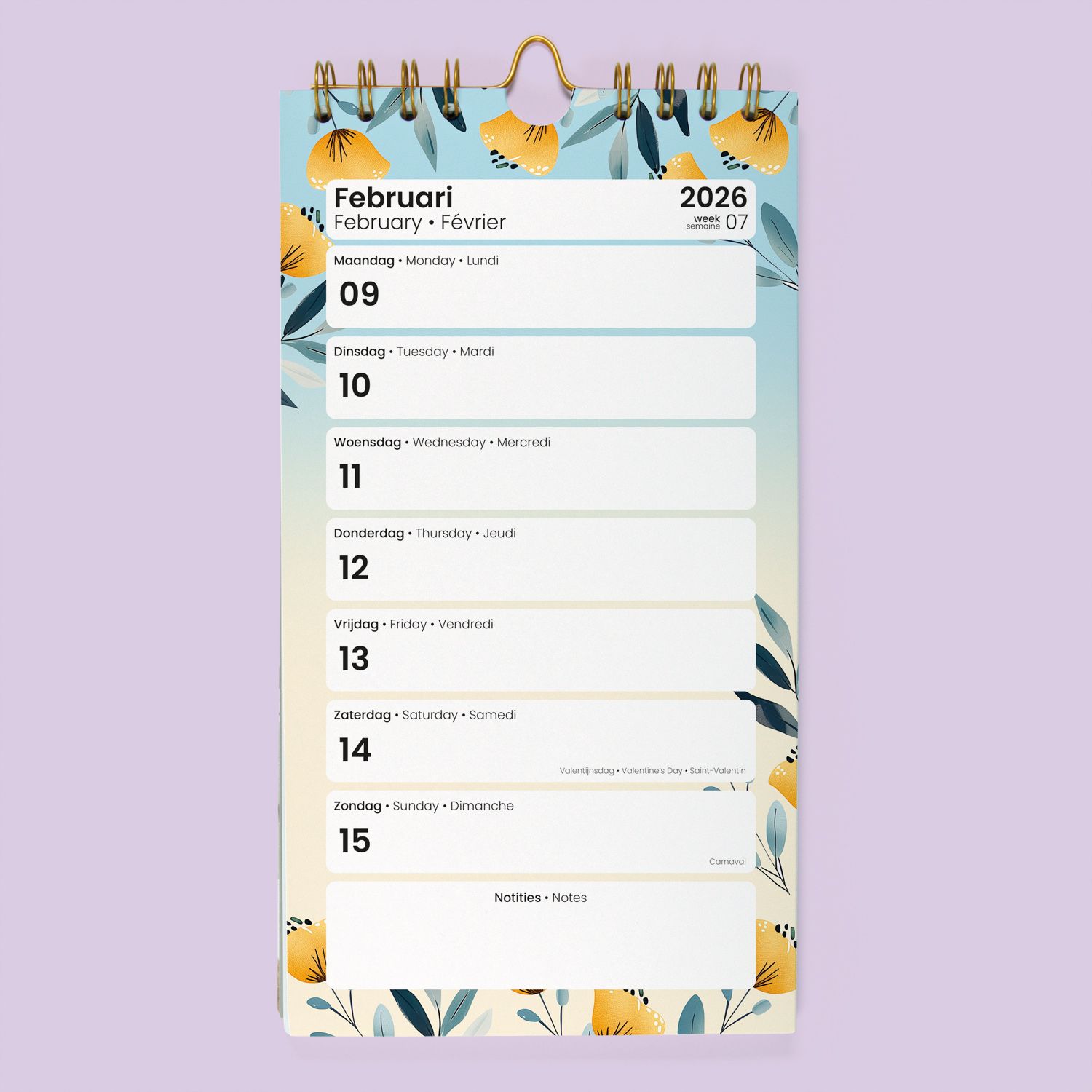 Paperclip Weekkalender 2026 Bloom Wire-O 15.5x28.8 cm