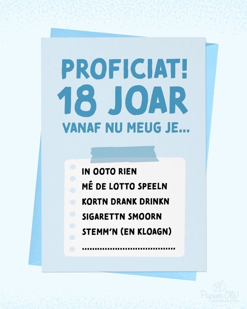 Papier Olé Wenskaart Proficiat 18 joar!