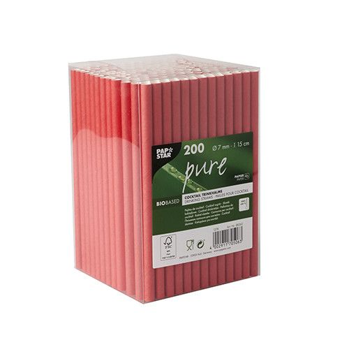PapStar Cocktailrietje Rood 15cm set 200 stuks - Papier