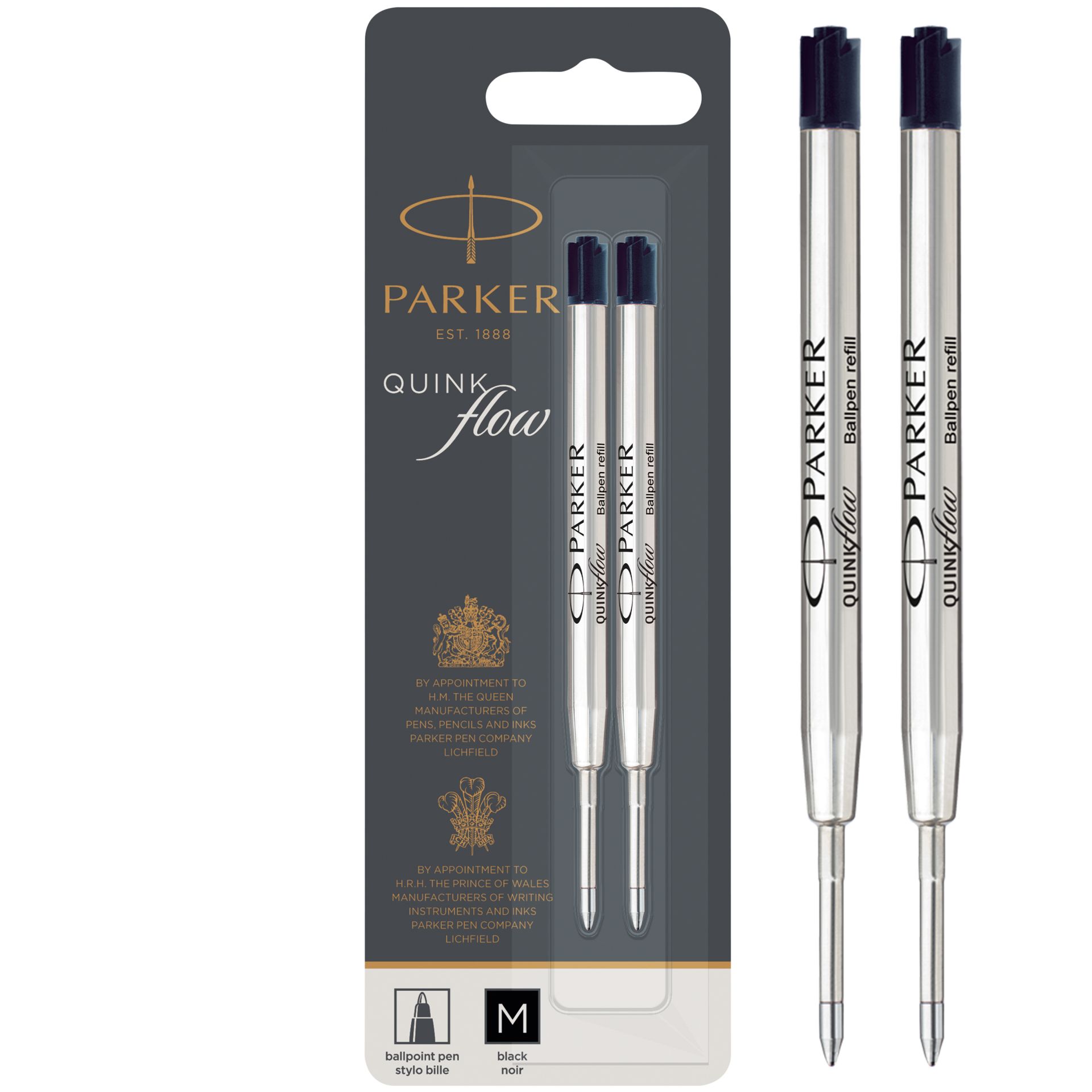 Parker Balpenvulling - Quink Flow - M Zwart - 2 stuks - Blister