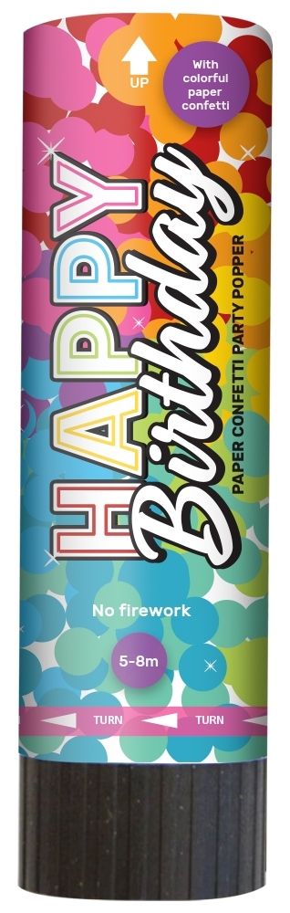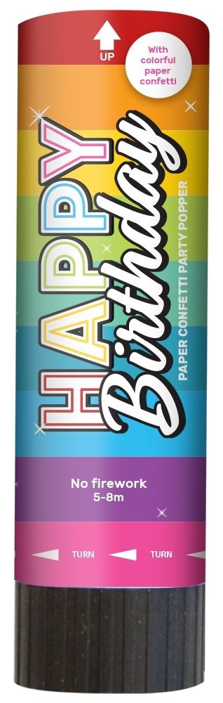 Party Popper Rainbow Happy Birthday 15 cm - 3 stuks