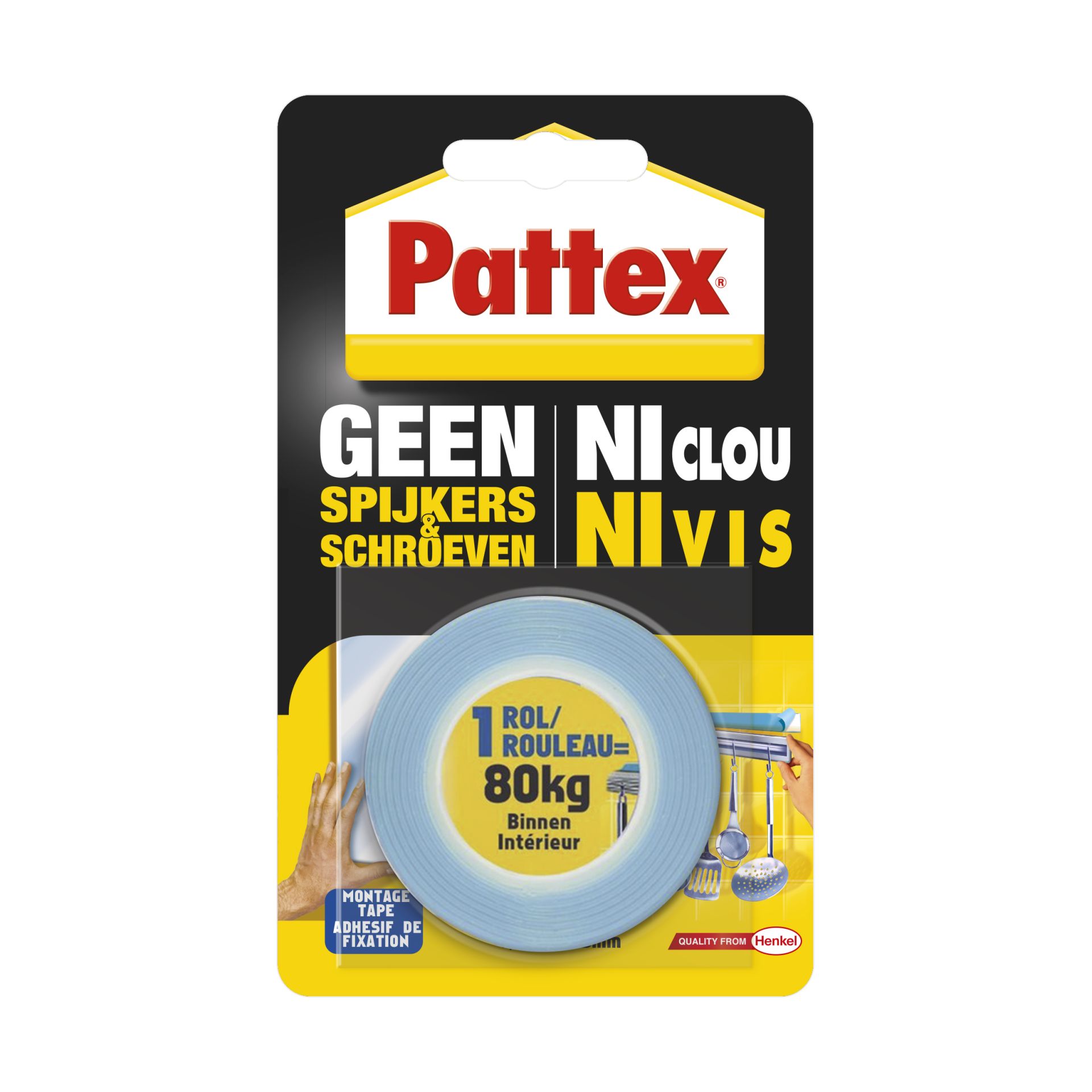 Pattex Montage Tape Dubbelzijdig 80 kg geen Spijkers geen Schroeven 1.5 m x 19 mm