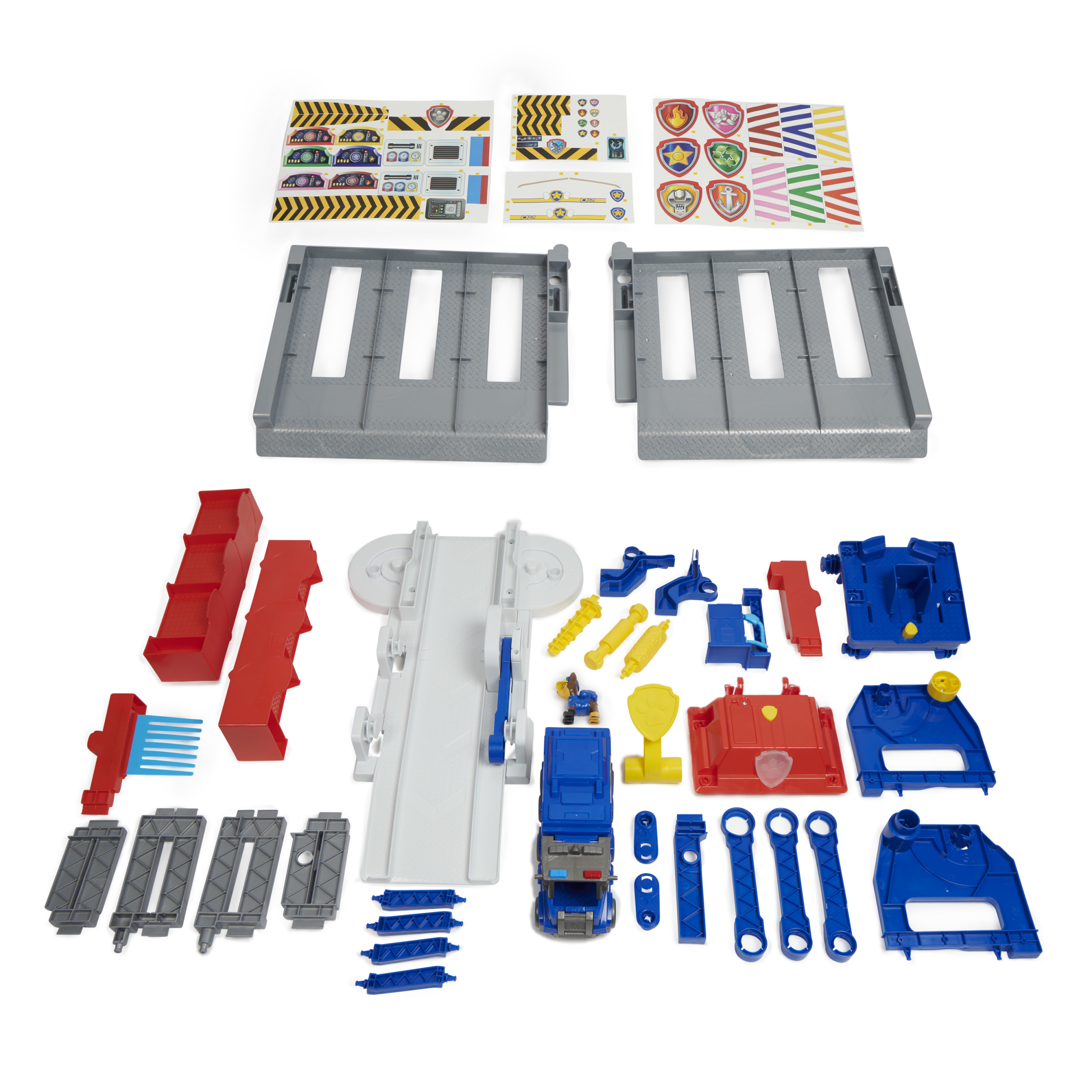 Het hoofdkwartier heeft de spannende licht- en geluidseffecten uit de serie en je kan de truck, van ruim 91,4 cm breed, transformeren zodat er genoeg ruimte is voor Chase en de rest van de pups, in hun wagens (afzonderlijk verkocht). Breng het hoofdkwartier omhoog en transformeer de ruimte voor een reddingsmodus. Spring dan snel in de truck en stop bij het bijtankstation om je tank bij te vullen, voordat je op weg gaat naar de hoofdkwartier-autowassstraat. Wanneer de truck klaar is voor actie, zet jehem in het dock en gebruik je de Big Rig-werper om een nieuwe missie te starten. Druk op de Paw Patrol-badge op het dak van de controleruimte om het licht en geluid te activeren.