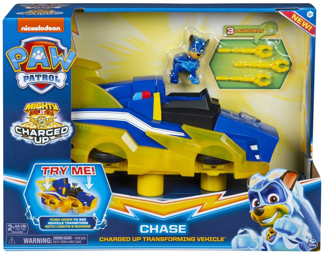 - INCLUSIEF CHASE-FIGUUR: Zet het exclusieve Charged Up Chase-figuur achter het stuur en red de wereld! Het voertuig van Chase is een geweldig cadeau voor kinderen vanaf 3 jr. en vereist 2 AA-batterijen (meegeleverd).