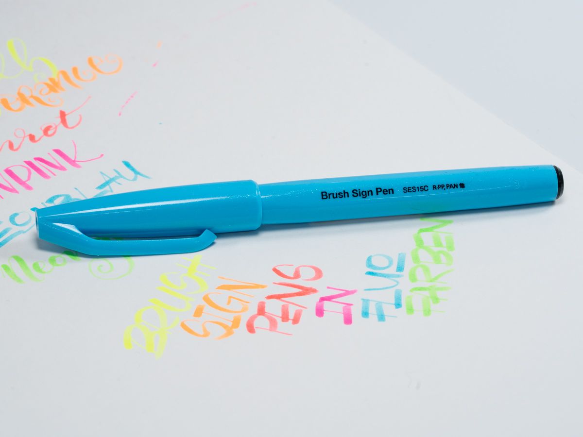 Pentel Brush Sign Pen Fluo Flexibele Punt Lichtblauw