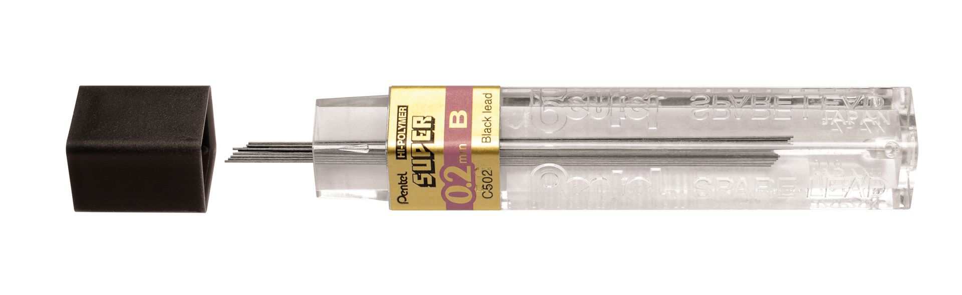 Pentel Potloodvulling Hi-Polymer Super B 0.2 mm - Zwart - C502-B