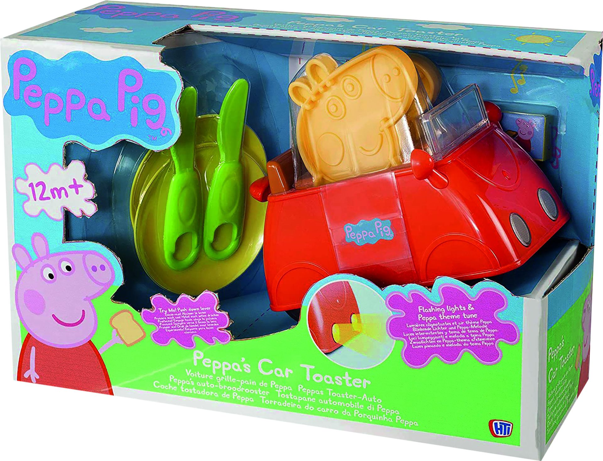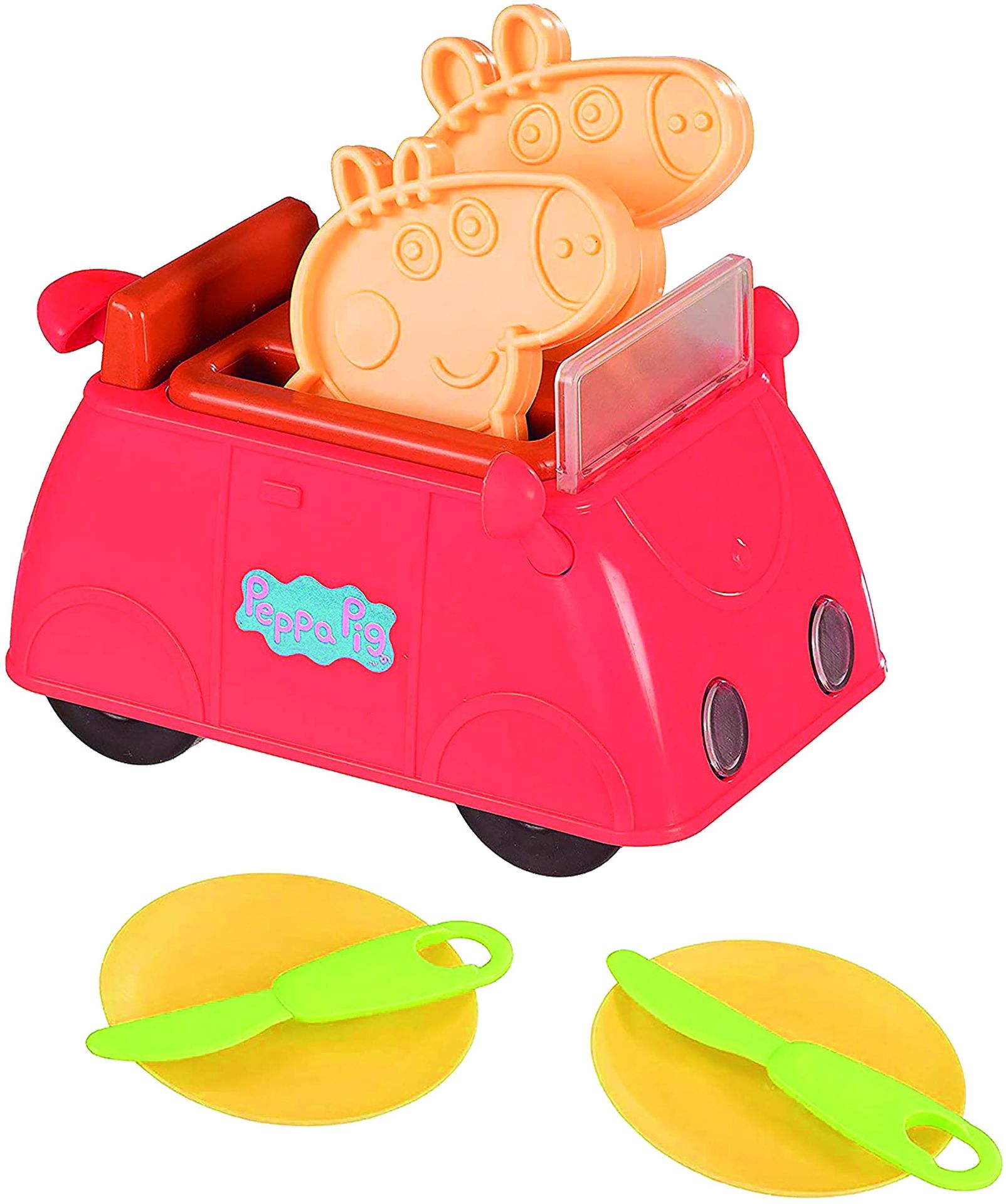 Peppa Pig, Peppa's Auto broodrooster met 2 borden en bestek, licht en geluid