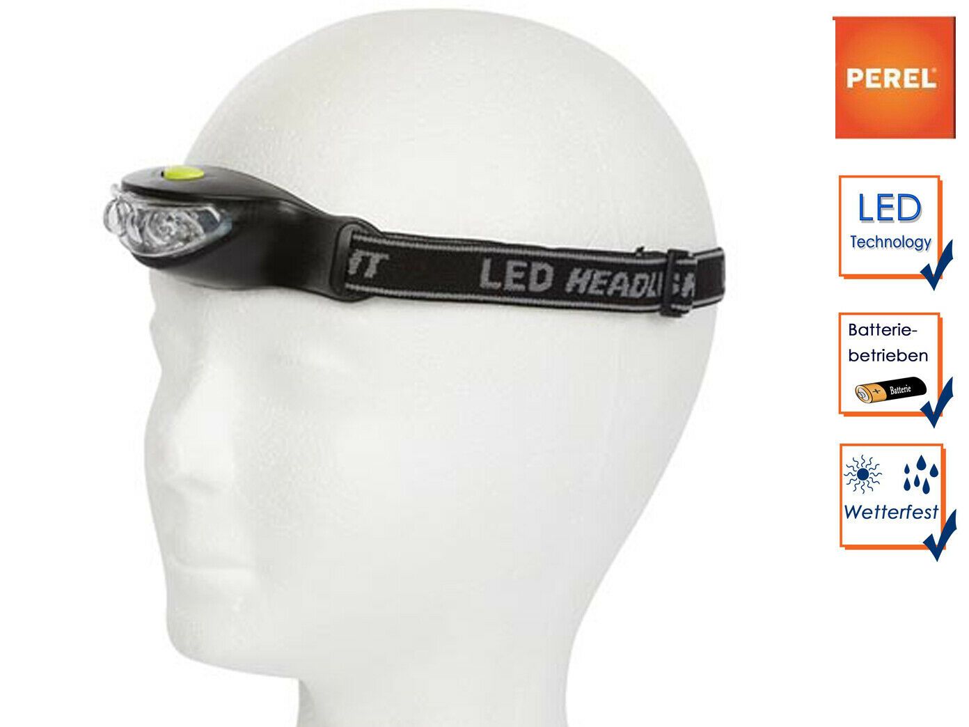 Perel Hoofdlamp met 3 krachtige LEDs Batterijen Inbegrepen