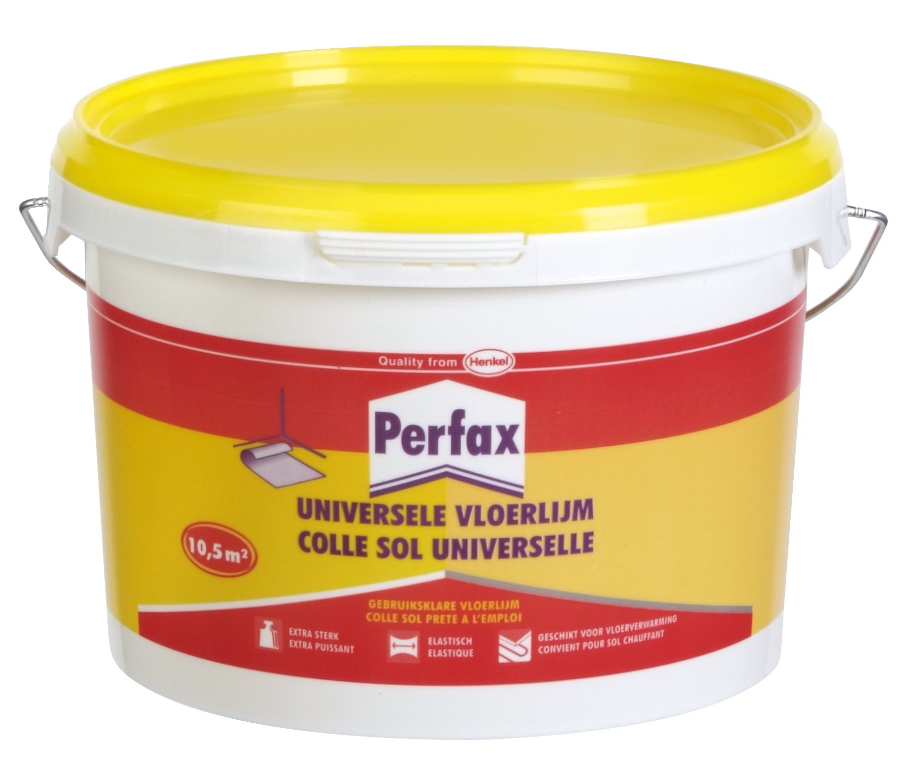 Perfax Uuniversele vloerlijm 3kg wordt gebruikt voor het lijmen van alle soorten textiele vloerbedekkingen of PVC-rug, PVC vloerbedekking, linoleum, PU-vloeren. De vloerbedekkingen mogen geen onregelmatigheden of variaties in dikte vertonen. Deze lijm kan tegen temperaturen van 0° tot +50°C. Het is vochtbestendig maar niet waterbestendig. Gebruik het niet bij temperaturen onder +5°C.