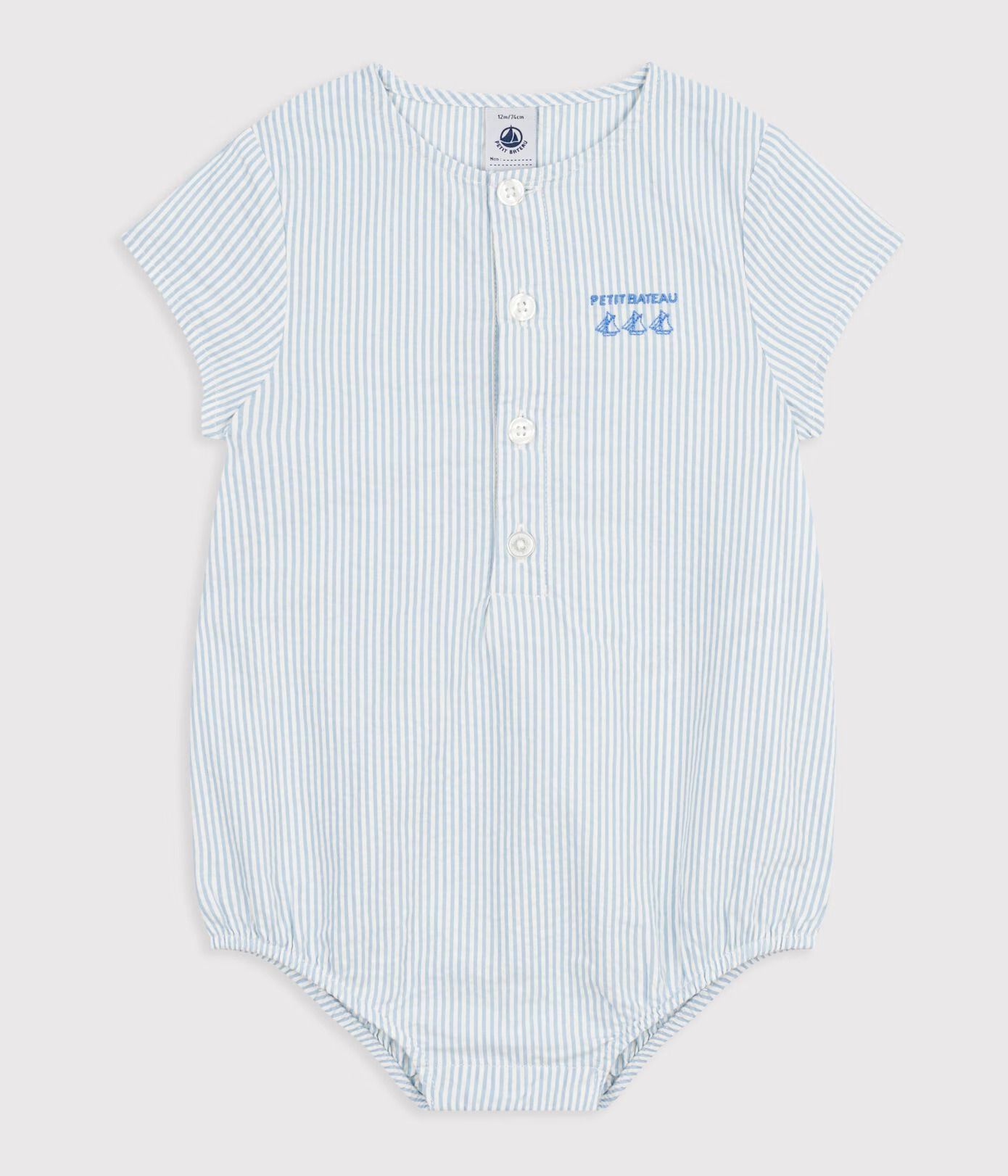 Petit Bateau Body Zm Gestreept Wit-Blauw - 2 jaar