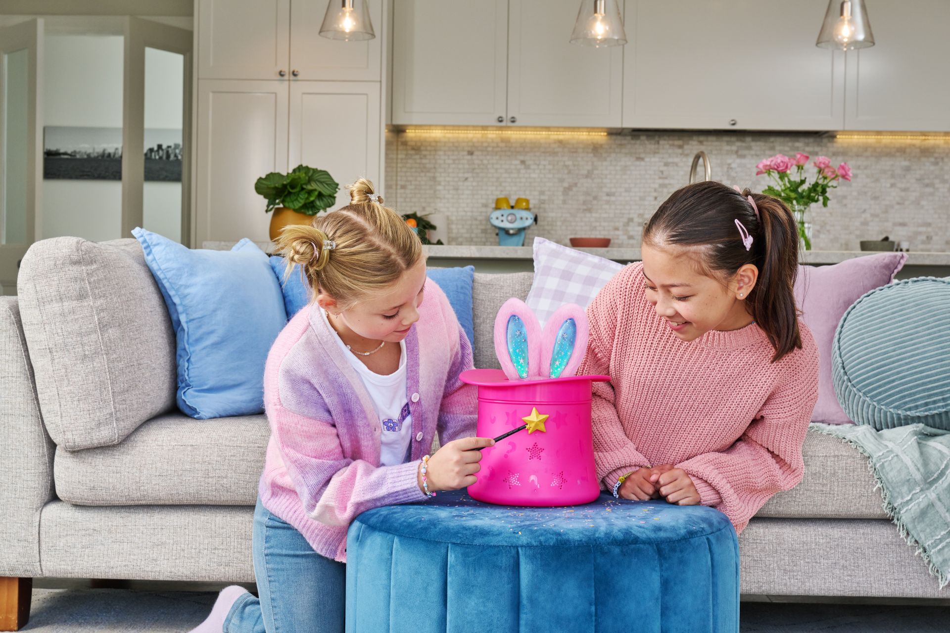 Abracadabra! Maak kennis met je schattigste nieuwe Magical Assistant. Zwaai met je magische sterrenstokje om de oren van je konijn te zien oplichten...TA DAA...Pak je konijntje eruit en zie hoe de confetti eruit springt. Ontdek het geheime vakje, hoeveel magische mini-konijntjes zal je aantreffen? Met meer dan 20 betoverende interactieve verrassingen is er zoveel magisch plezier te beleven.