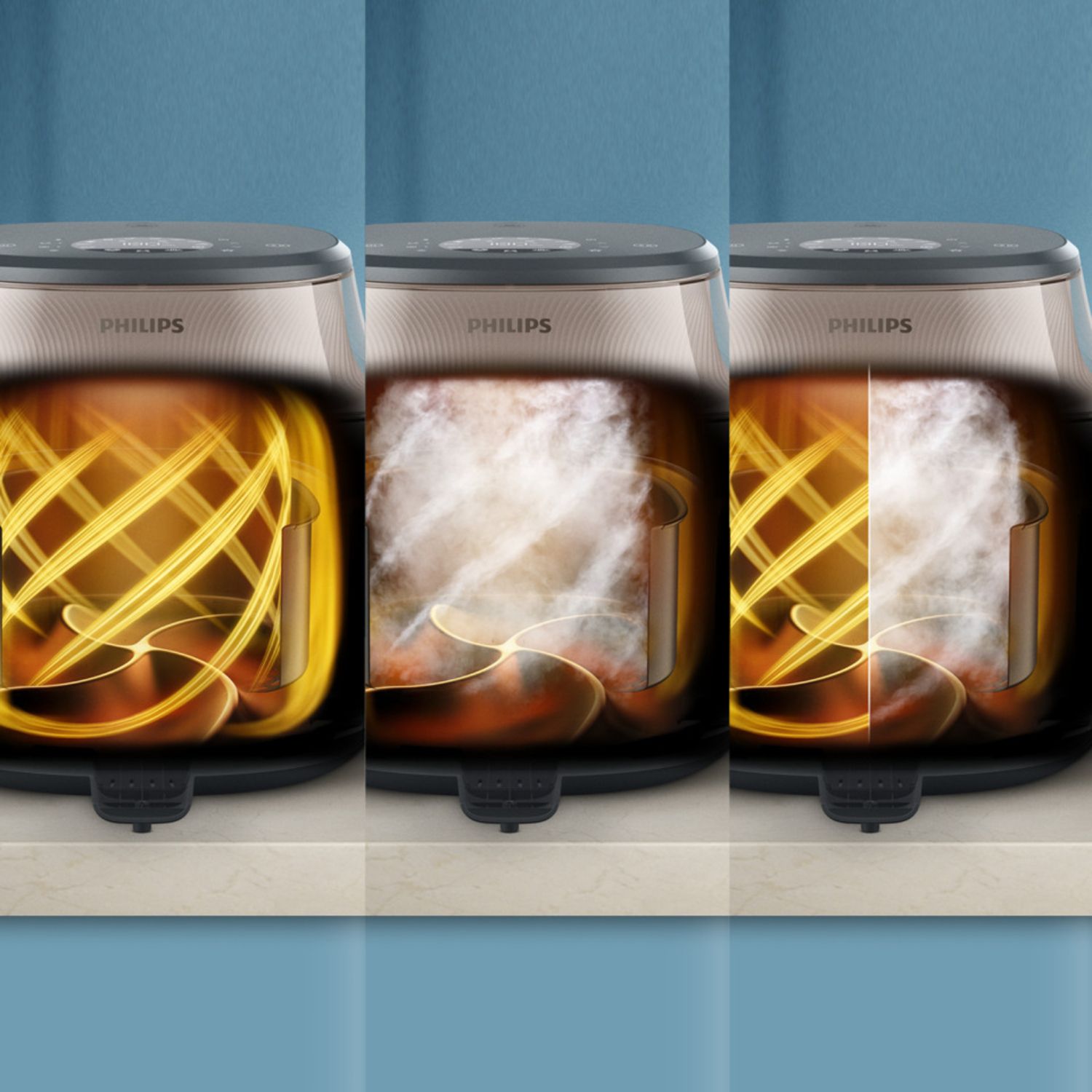 Kook tot 50% sneller en bespaar tot 70% energie wanneer u kookt met de Philips Steam Airfryer in plaats van de oven.**