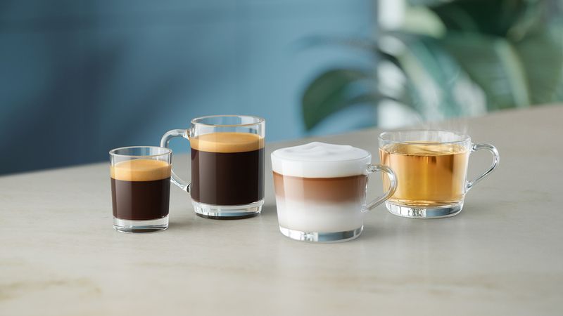 Geniet van 4 populaire koffierecepten: van klassieke espresso, gewone zwarte koffie tot cappuccino, met de perfecte crema, aroma en temperatuur. Heet water voor thee is ook beschikbaar.