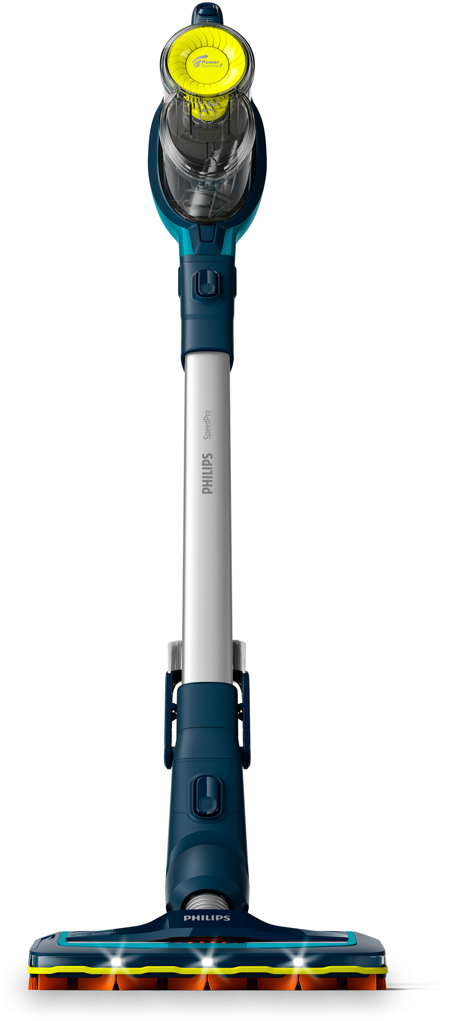 De Philips Speedpro FC6727/01 heeft verschillende voordelen om het stofzuigen zo gemakkelijk mogelijk te maken. Zo is het mondstuk voor 180 graden open. Dit houdt in dat het niet alleen stof opneemt aan de voorkant, maar ook via de zijkanten. Hierdoor zuig je bijvoorbeeld gemakkelijker langs de plinten. Daarnaast heeft de zuigmond LED-verlichting aan de voorkant. Hierdoor zie je beter waar het stof ligt. Is de 21,6 volt accu vol, dan stofzuig je 40 minuten op de laagste stand. Maar voor het vloerkleed schakel je de turbostand in. Met de mini-turboborstel tover je de kruimelzuiger om tot een krachtige tegenstander voor dierenharen en ander grof vuil. Handig, als je de achterbak van de auto uit wilt zuigen.