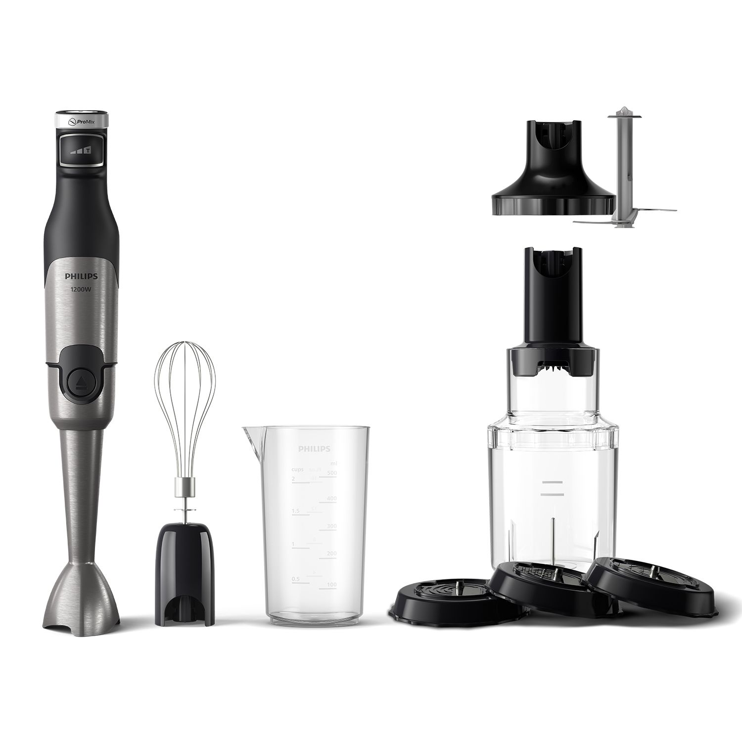 Philips HR2684/00 Staafmixer Serie 5000, 1200 Watt met Hakmolen, Garde, Maatbeker, Snij- en raspschijven