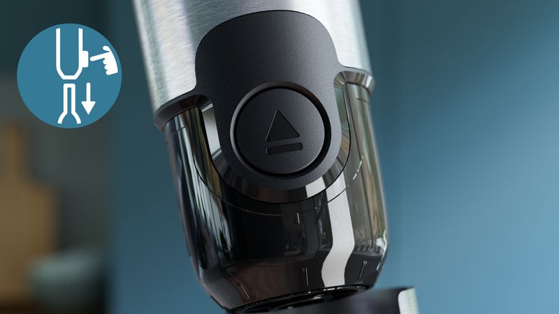 Met één druk op de knop kunt u de staafmixer met één hand ontgrendelen. U kunt dus hulpstukken vervangen zonder de blender neer te zetten of rommel te maken op het aanrecht.