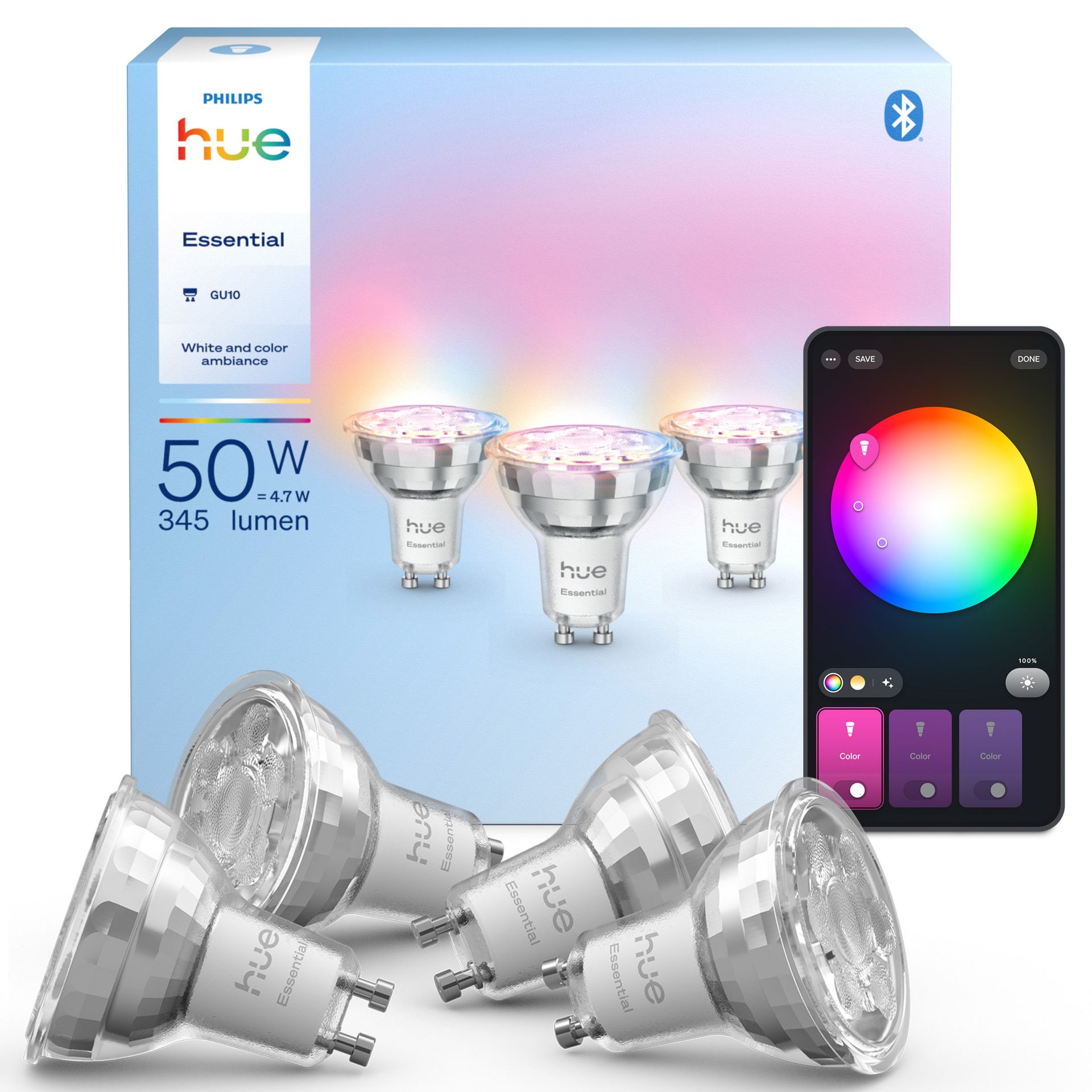 Philips Hue Essential LED Spot GU10 4.7W 345lm 2200-6500K White & Colour Ambiance - 2 stuks