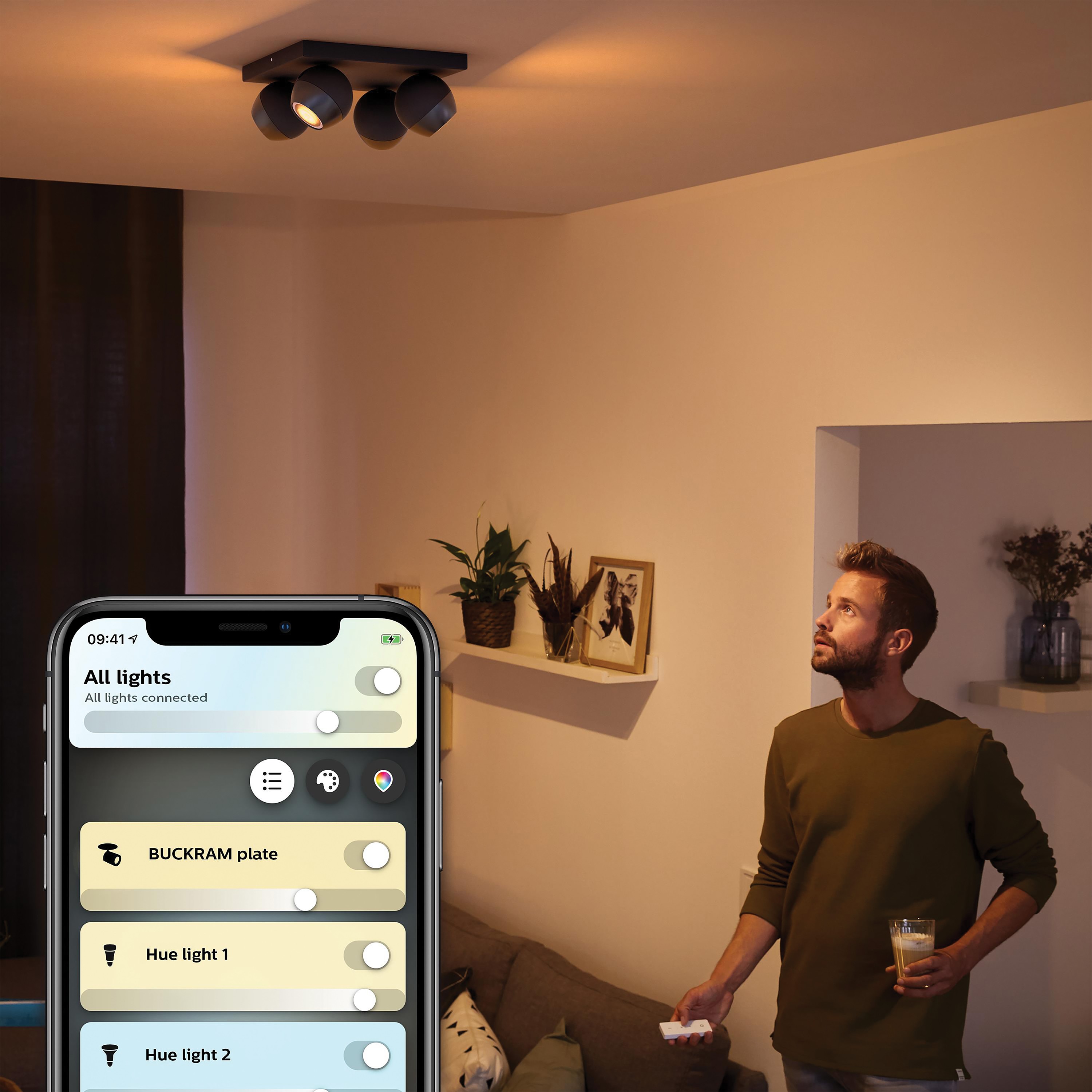 Philips Hue Opbouwspot Buckram Zwart 4xGU10 5W White Ambiance met Switch