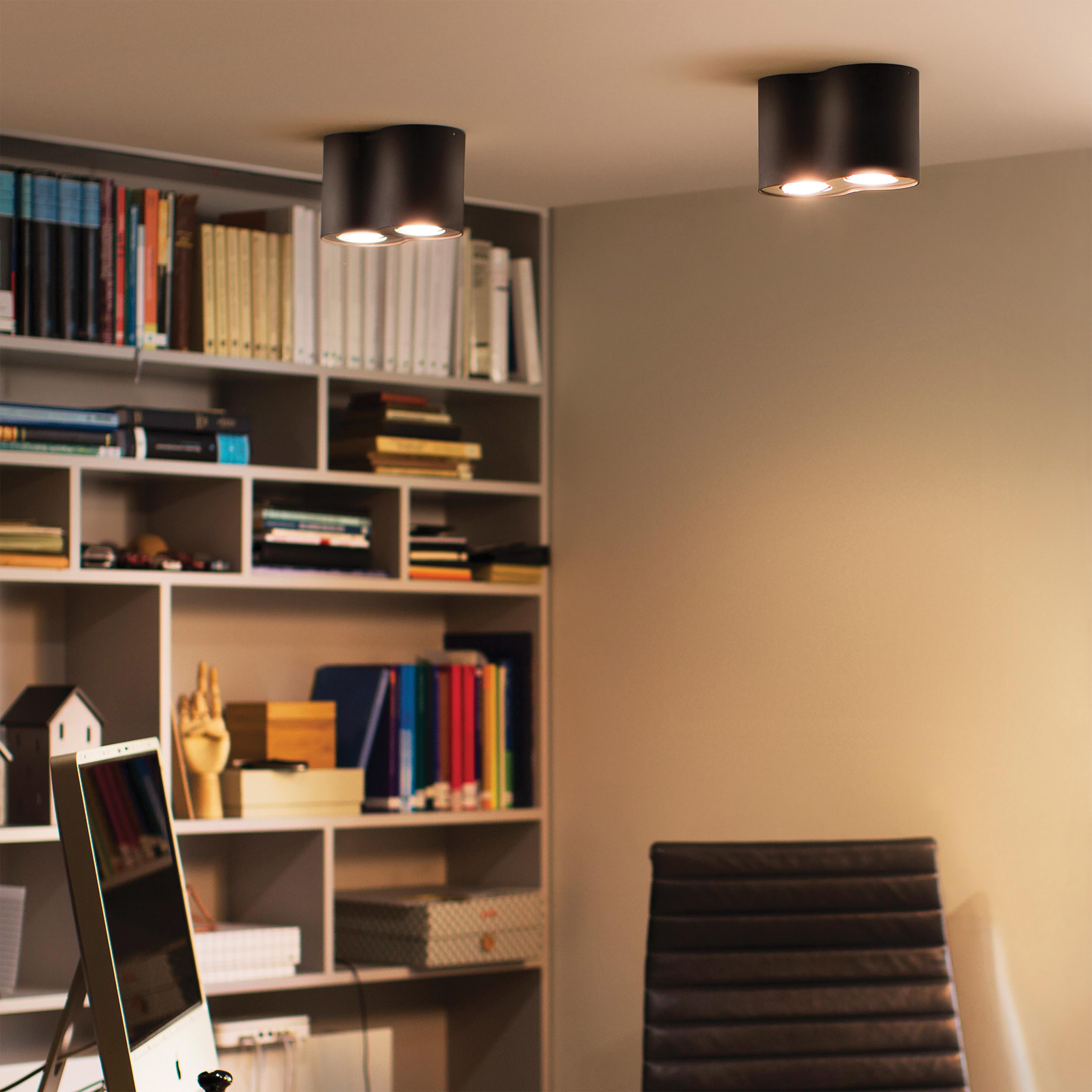 Een mooie twee-lichts opbouwspot van Philips uit de myLiving ambience collectie. Deze spot is draaibaar waardoor u het licht gemakkelijk in de juiste richting kunt plaatsen. Geleverd inclusief Hue GU10 lichtbron, die draadloos dimbaar is met de bijgeleverde Hue Switch. Begin de dag met koel, helder licht wat verfrissend en opwekkend werkt en sluit de dag ontspannend af met warmwit licht. Het Hue systeem is makkelijk om te installeren en u kunt ook meerdere Hue lampen aan één dimmer koppelen. De spot heeft een mooie eenvoudige moderne uitstraling waardoor het in ieder interieur past. Deze spot beschikt ook over Bluetooth en hiermee kunt u de spot ook bedienen via de Bluetooth app op uw telefoon of tablet. Wil je genieten van de maximale mogelijkheden van Hue, zoals het personaliseren van lichtscènes, routines en timers? Verbind de lamp dan met de apart verkrijgbare Philips Hue Bridge.
