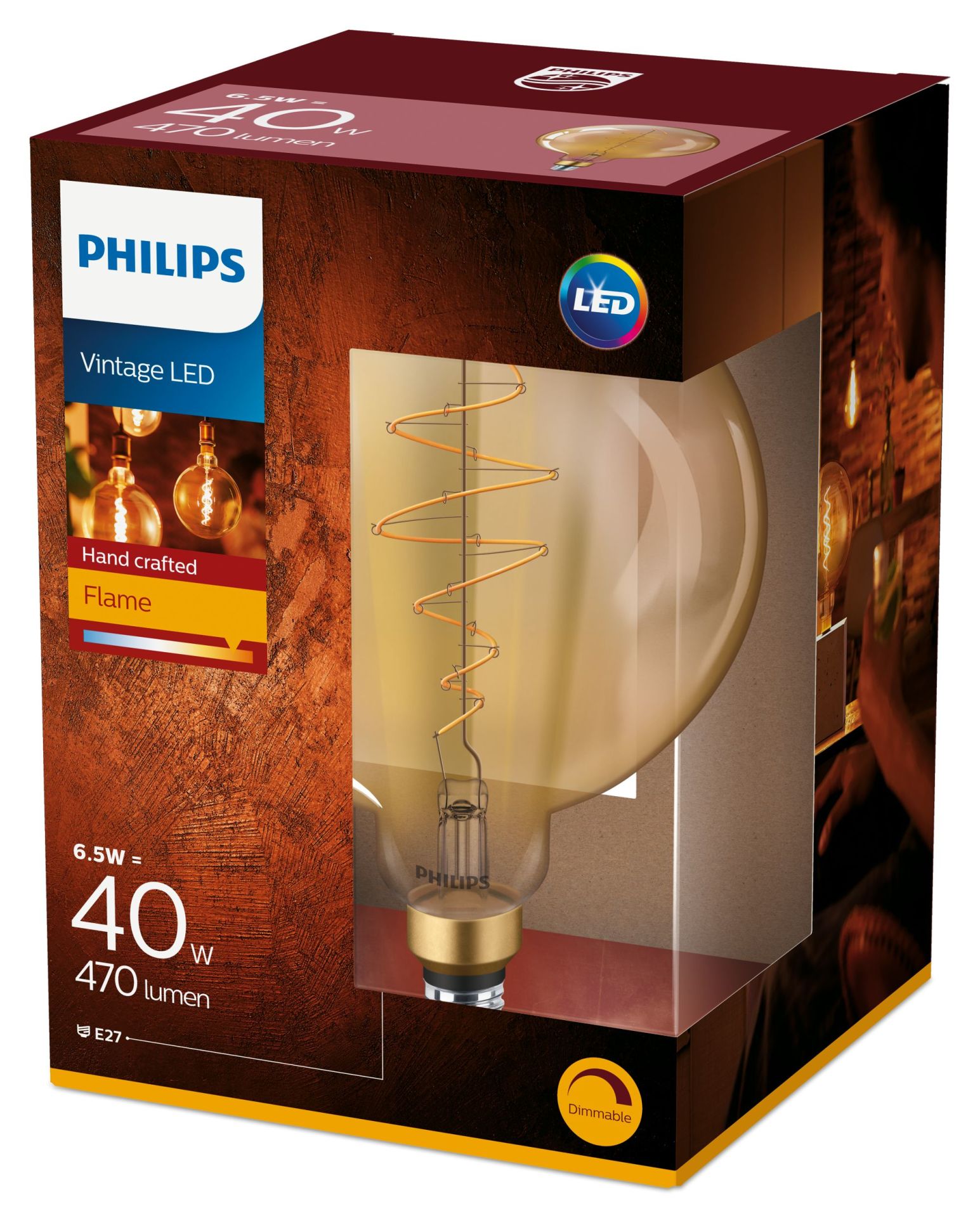 Philips LED Bollamp G200 Filament Gold E27 7W 470lm 1800K Dimbaar