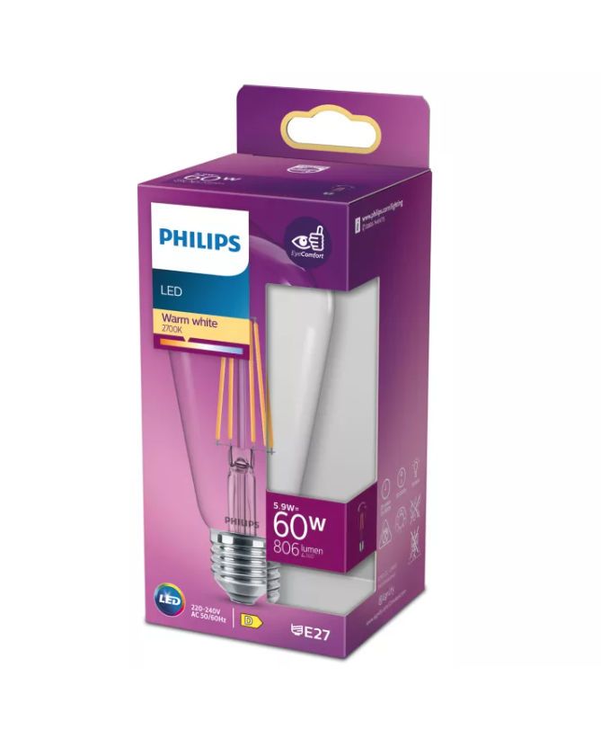 Philips LED Edison Lamp ST64 Filament E27 5.9W 806lm 2700K
