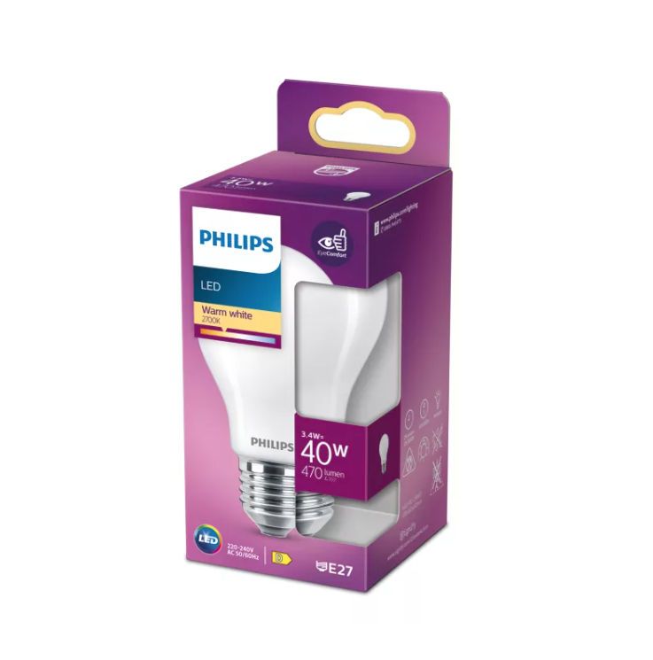 Philips LED Standaard Lamp A60 E27 3.4W 470lm 2700K