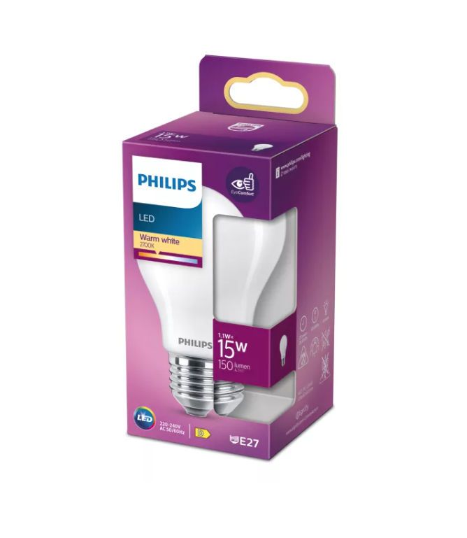 Philips LED Standaard Lamp A60 Wit E27 1.1W 150lm 2700K