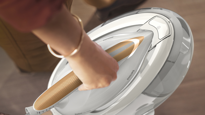 Vergrendel uw strijkijzer veilig op het basisstation om het eenvoudig overal in huis te kunnen dragen en het risico van contact met de hete zoolplaat te beperken.