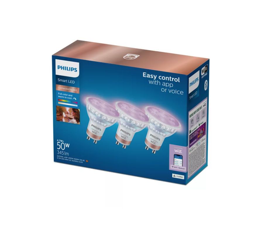 Philips Smart LED Spot GU10 4.7W 345lm 2200-6500K RGB - 3 stuks