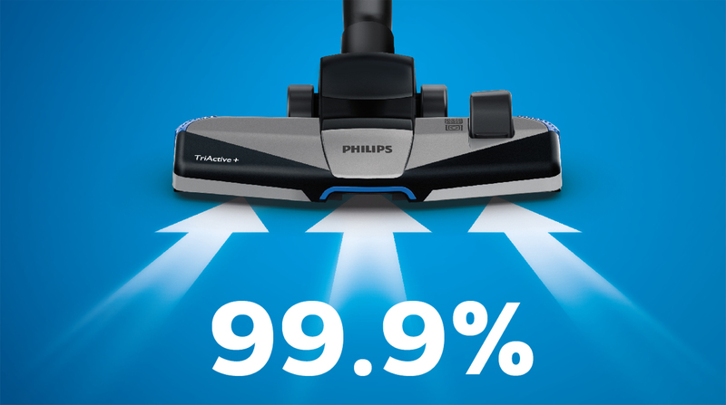 Het TriActive+-mondstuk en de hoogblijvende zuigkracht zorgen ervoor dat u 99,9% van het fijne stof** kunt opzuigen.