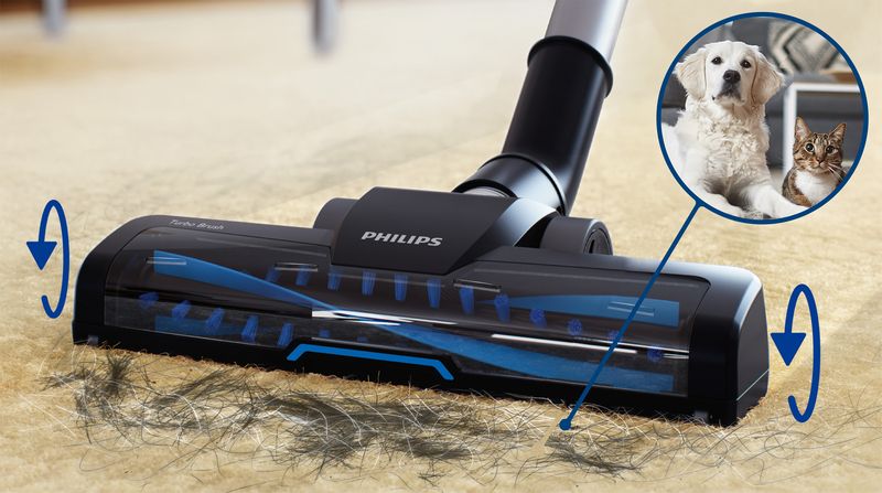 De roterende Turbo-borstel is ontworpen voor optimale verwijdering van (huisdieren)haar en pluisjes. Tapijtvezels worden geopend voor een diepere reiniging.