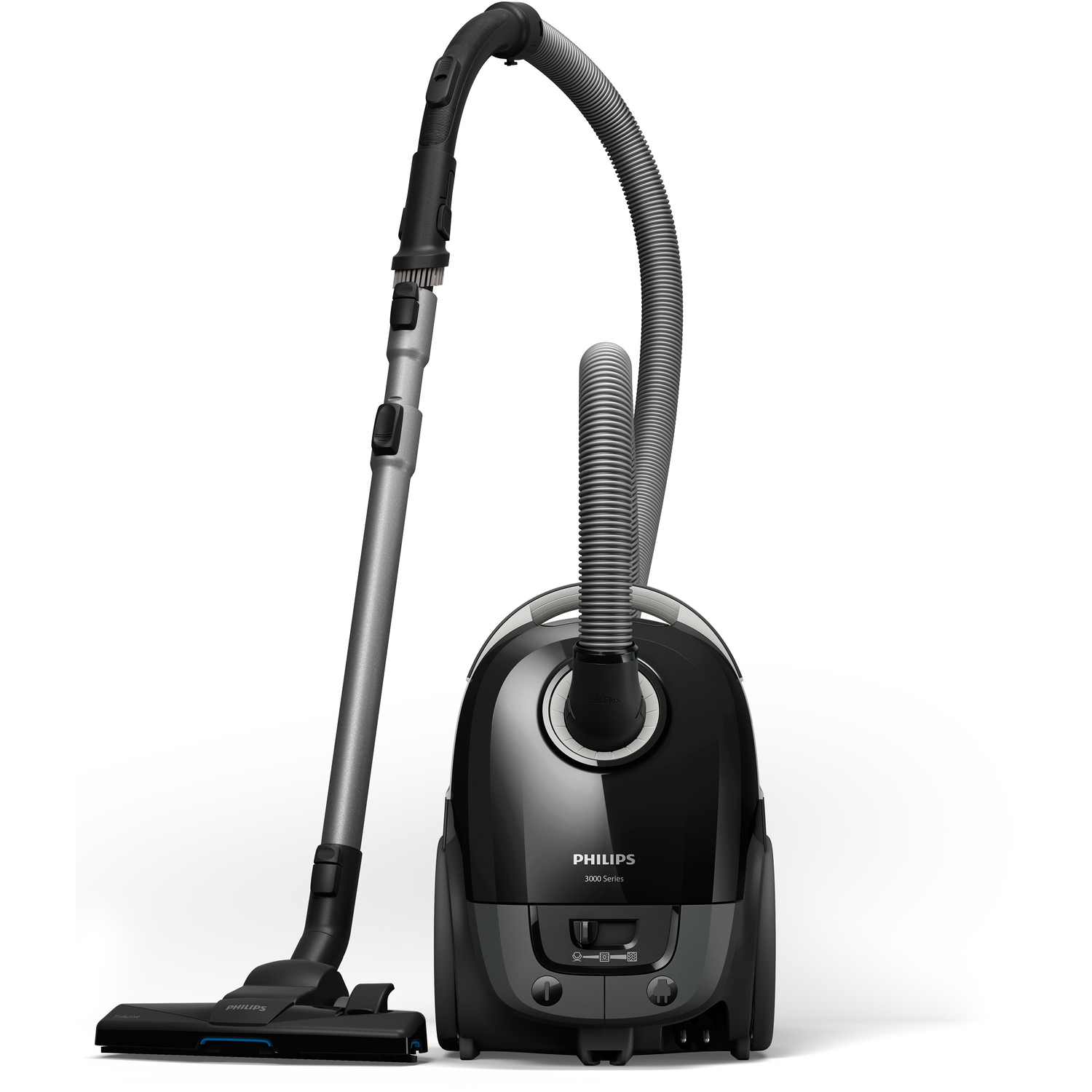 De Philips stofzuiger met zak Series 3000 levert topprestaties met minimale inspanning, in een compact design. De AirflowMax-technologie zorgt voor langer behoud van een optimale zuigkracht. Het TriActive-mondstuk verwijdert stof efficiënt van zowel harde als zachte vloeren. De zuigkracht is eenvoudig te regelen middels de schuifknop op het apparaat. Door het compacte design is de stofzuiger eenvoudig op te bergen en ideaal voor kleinere huishoudens en mensen met weinig opbergruimte.