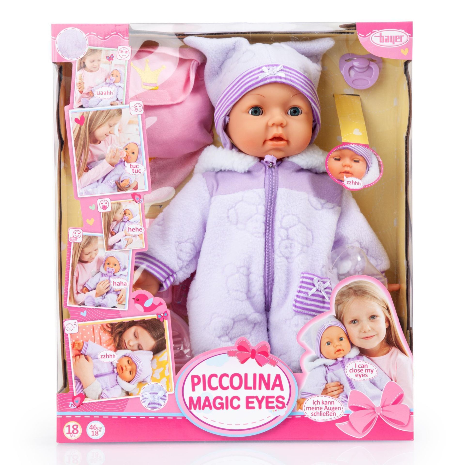 Piccolina Magic Eyes Babypop 46 cm, kan haar ogen sluiten, brabbelt 5 woorden