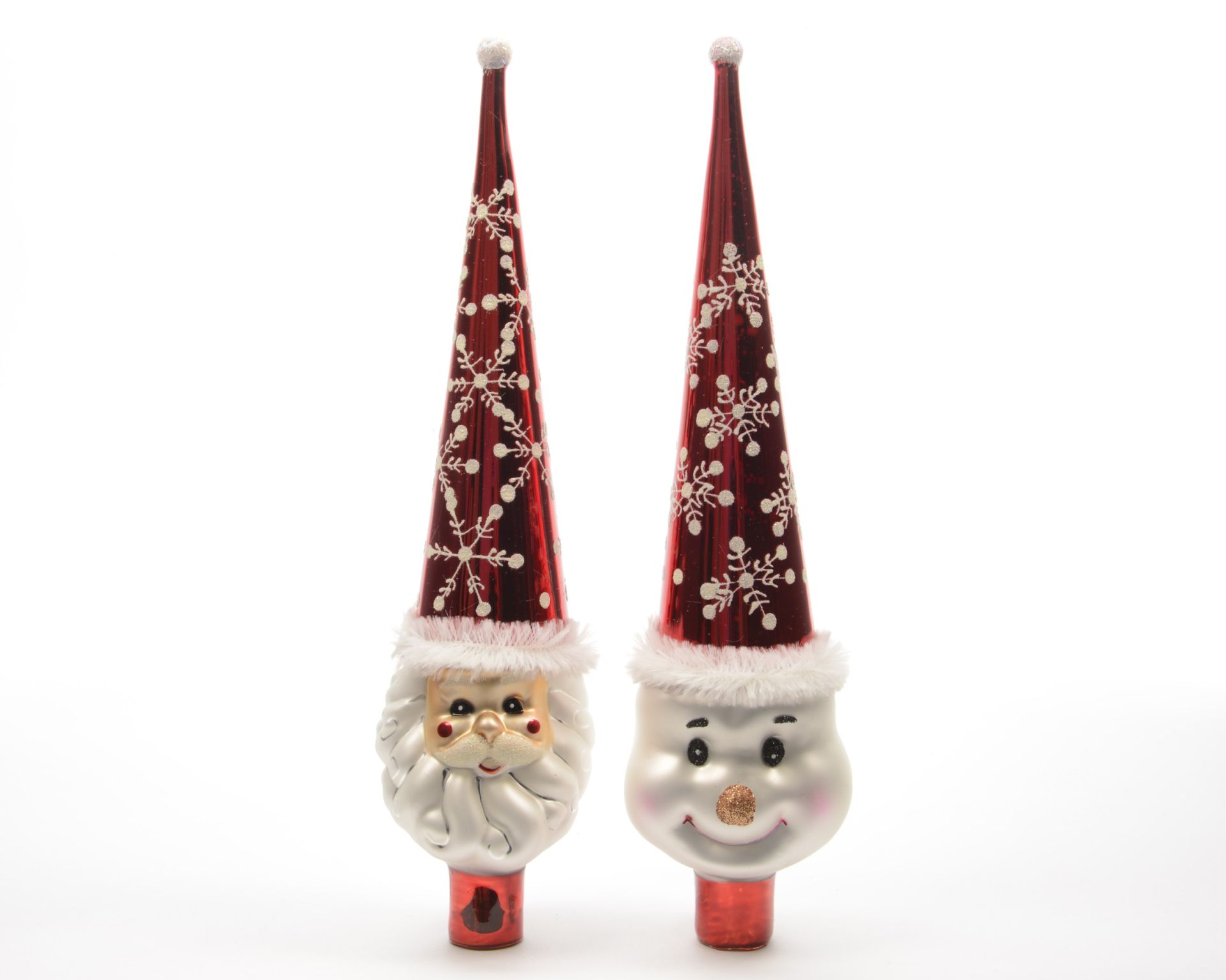 Piek Glas Kerstman/Sneeuwman 7.5x30 cm - Glanzend - assorti - prijs per stuk