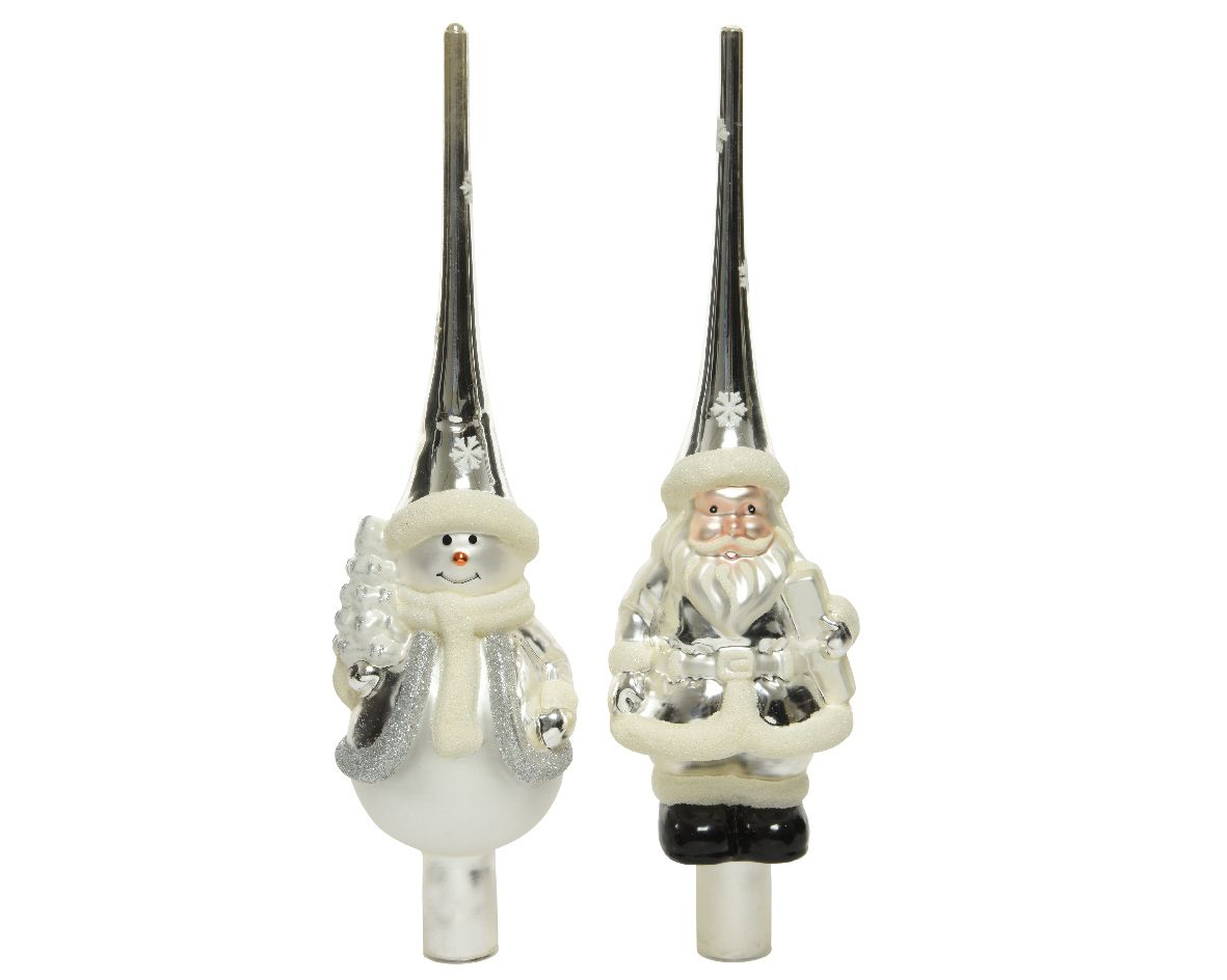Piek Glas Kerstman/Sneeuwman 8x28 cm Wit/Zilver - assorti - prijs per stuk
