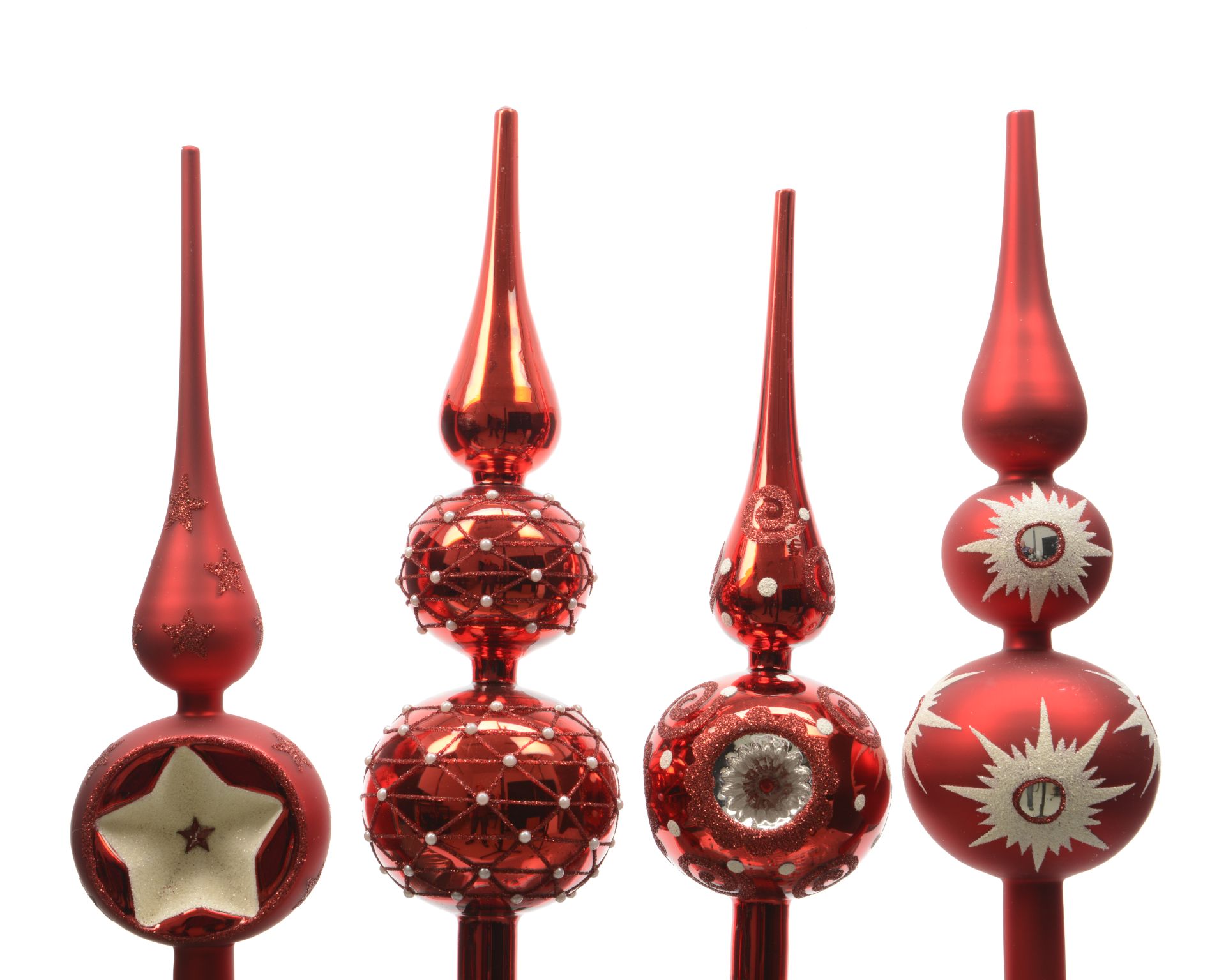 Piek Glas Kerstrood 8x31 cm Sneeuwvlok/Ster/Parel/Krul - assorti - prijs per stuk
