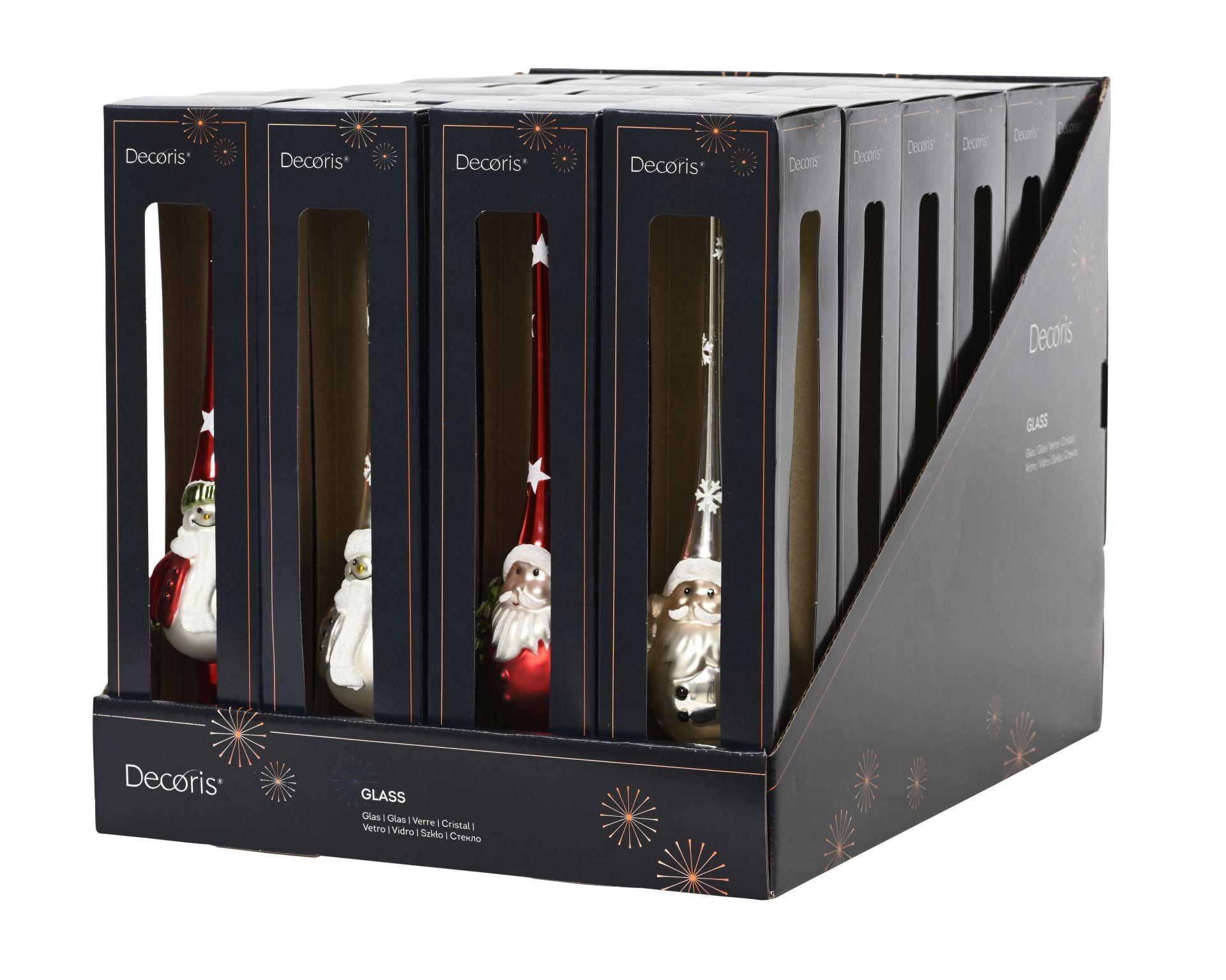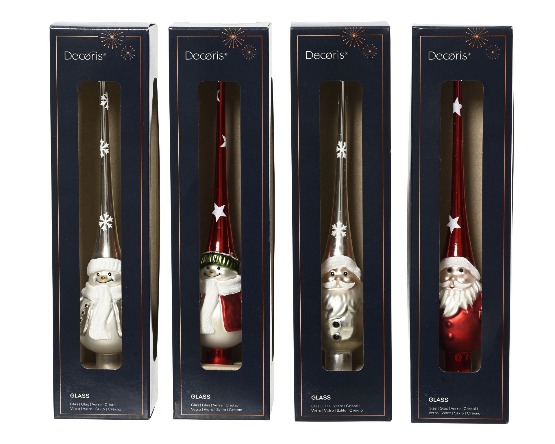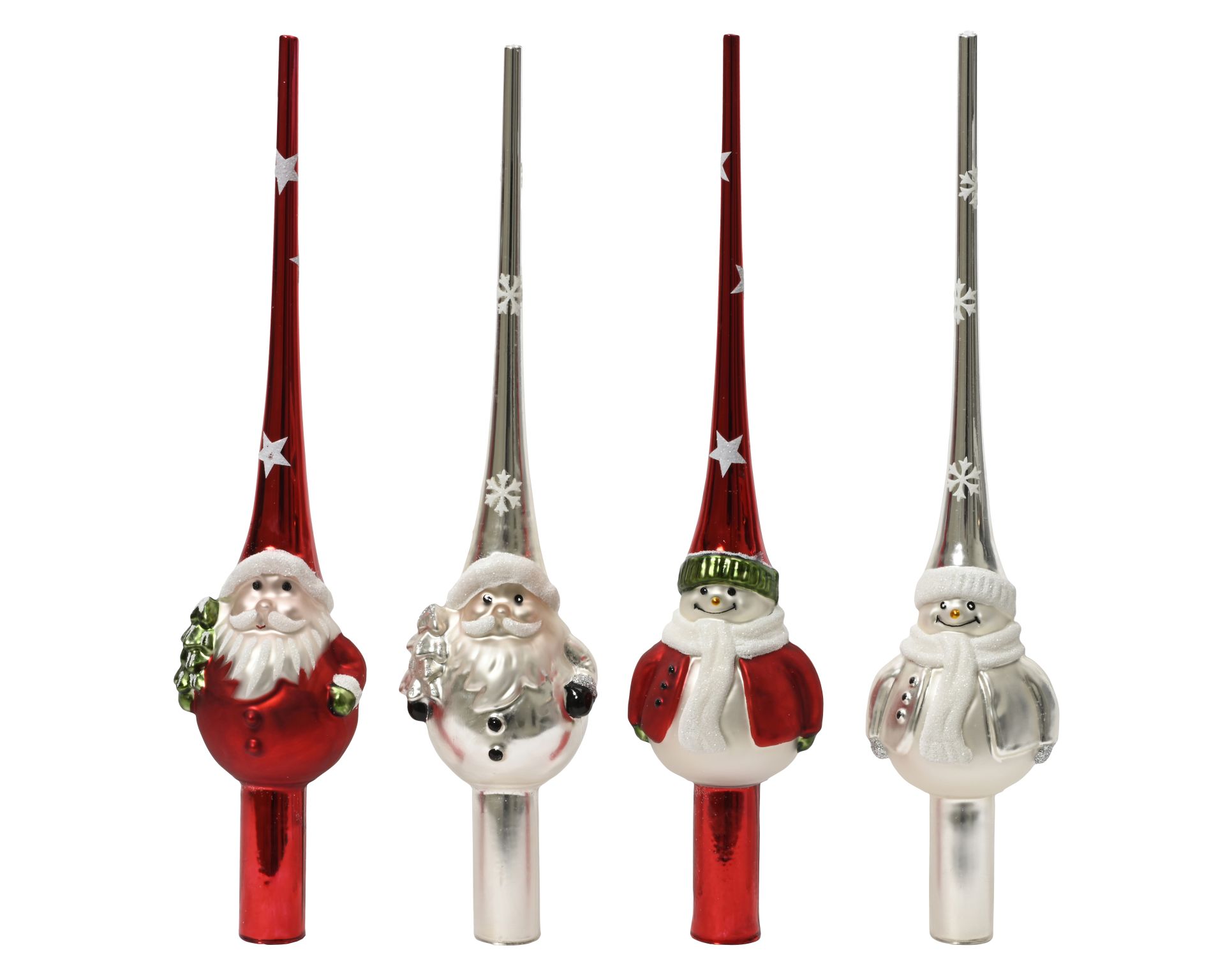 Piek Glas Rood/Zilver 5.5x25 cm Kerstman/Sneeuwman - assorti - prijs per stuk