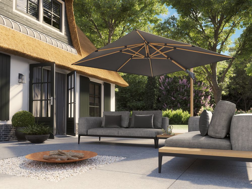 Platinum Challenger T2 Hangparasol 3x3m Oak frame - Faded black doek - exclusief parasolvoet