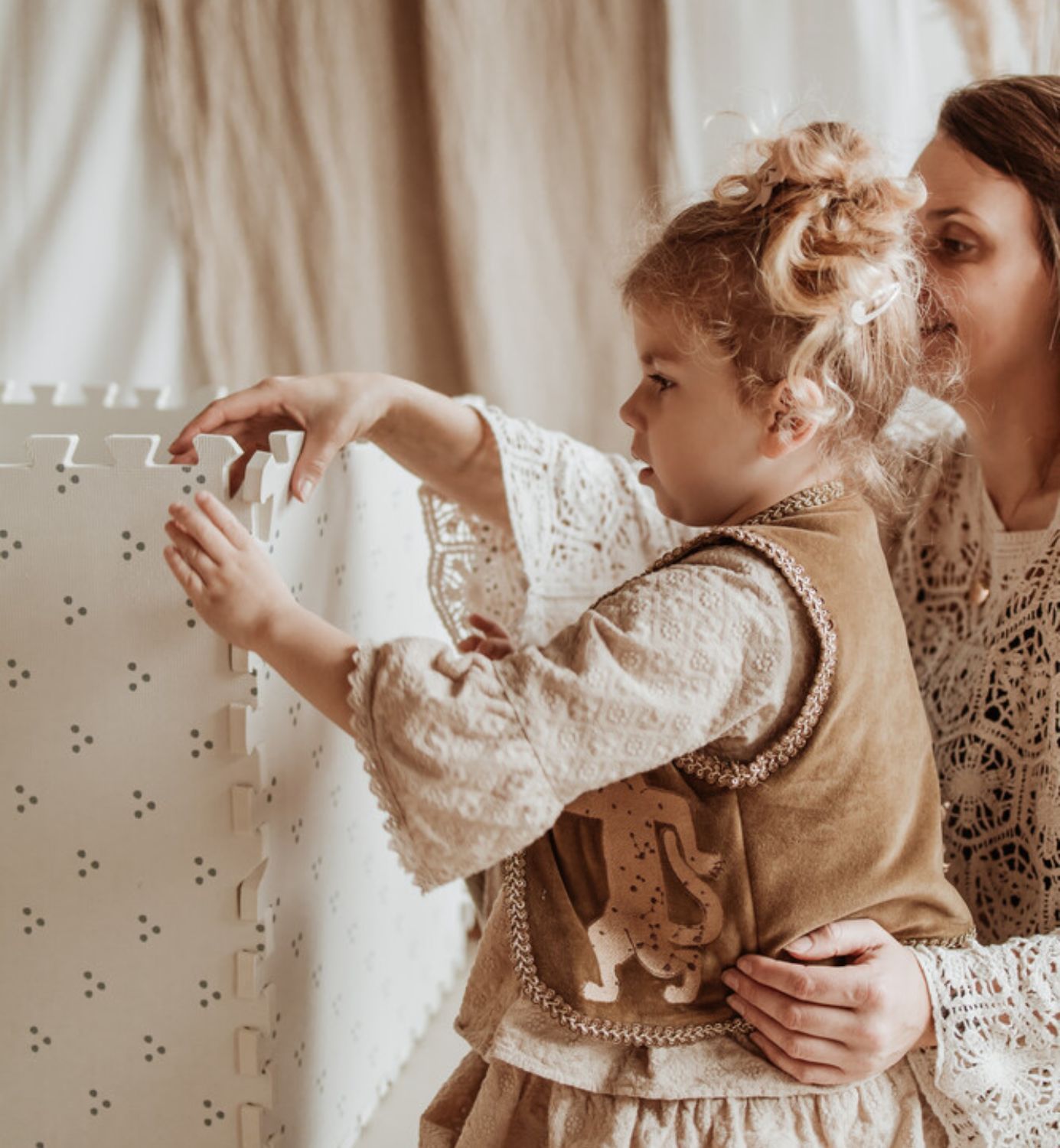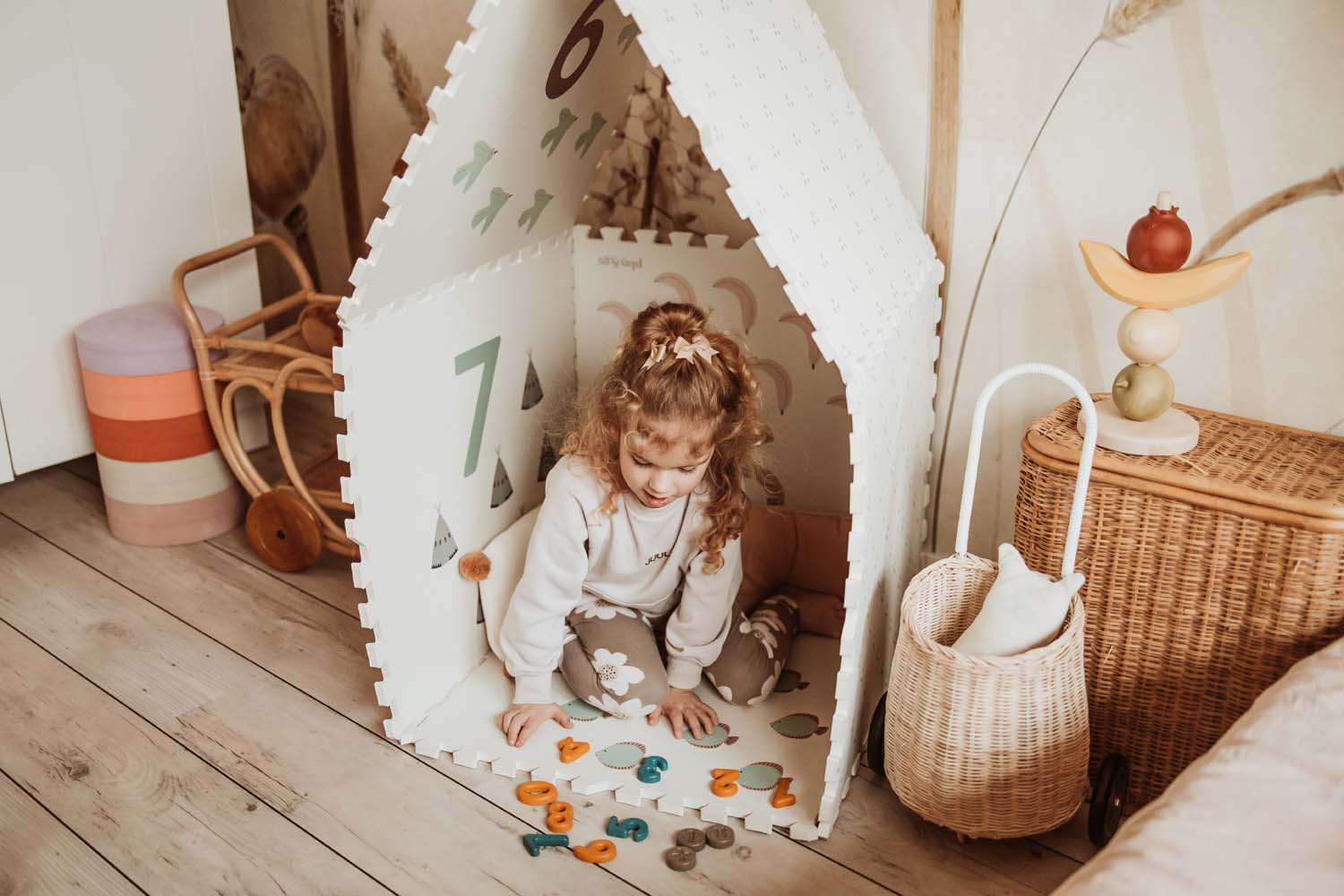 Onze EEVAA wordt geleverd met extra randstukken om een tapijtachtig uiterlijk te creëren. Maar in tegenstelling tot een tapijt kun je onze Play&Go EEVAA gemakkelijk door je hele huis verplaatsen om overal plezier te hebben.