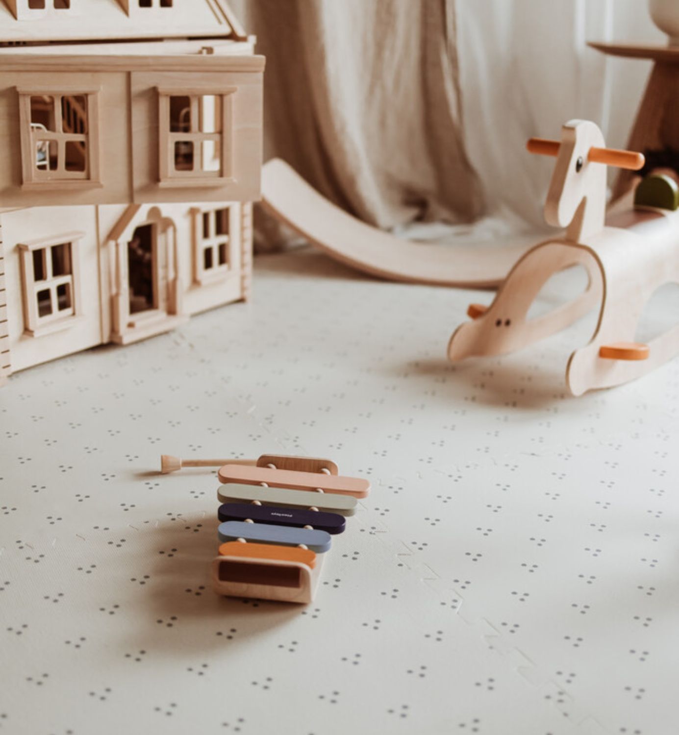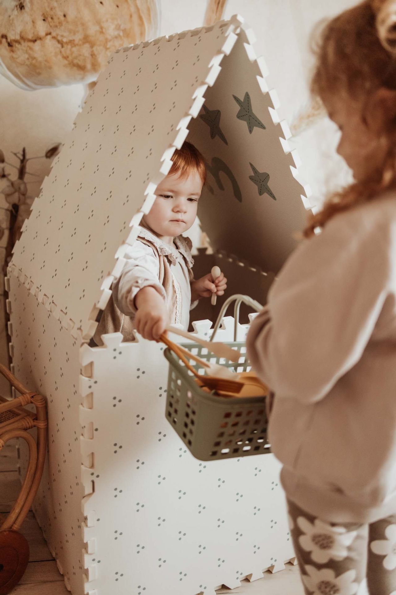 Dubbel bedrukt, dubbel plezier: Onze matten zijn aan beide zijden bedrukt en hebben een ontwerp dat aanzet tot fantasiespel. Draai de speelmat om en versier je huis met een mooi en trendy stippenpatroon. Is de speeltijd voorbij, dan kun je de speelmat eenvoudig omtoveren tot een opbergdoos voor al je speelgoed. Je kunt er zelfs een speelhuis, kasteel of minimarkt van maken! Is dat niet leuk!