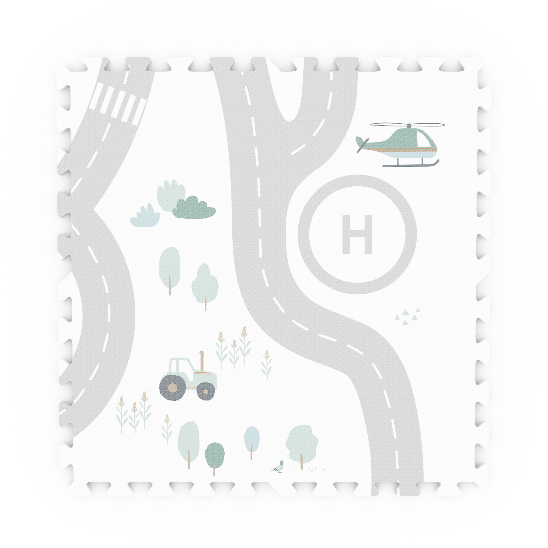 Speel op jouw manier met onze Play&Go EEVAA: een klassieke speelmat met puzzelroutekaart van EVA-schuim in een nieuw jasje.