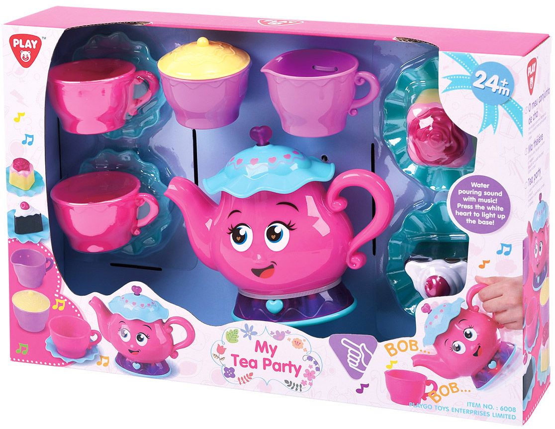 Playgo Thee set roze, licht en geluid lopend water, muziek