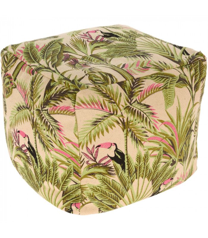 Poef met Plantenprint Beige/Groen 45x45x35 cm