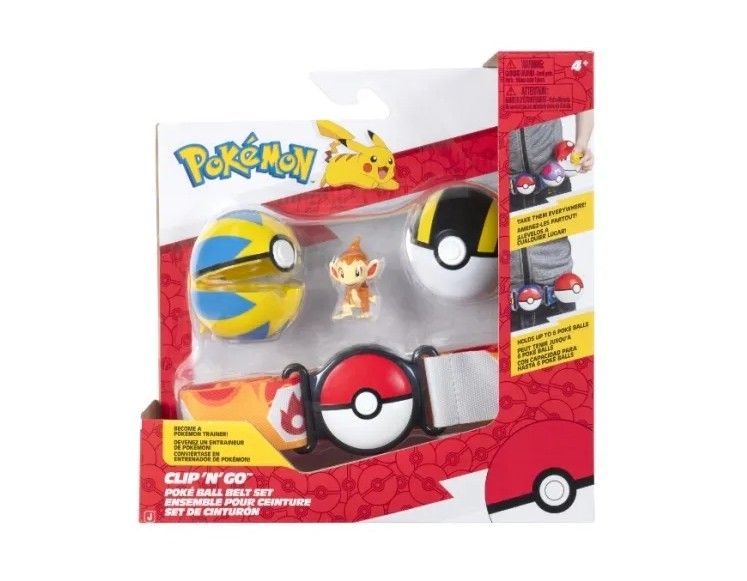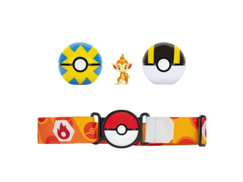 Pokemon - Clip'N Go Poke Ball Belt Set - Chimchar with Quick Ball, Ultra Ball, & Fire-type Themed Belt