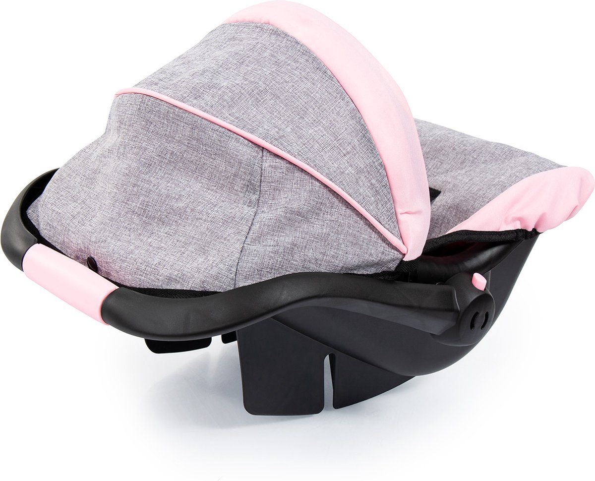 Poppendraagstoel met stoffen kap, Grijs/roze