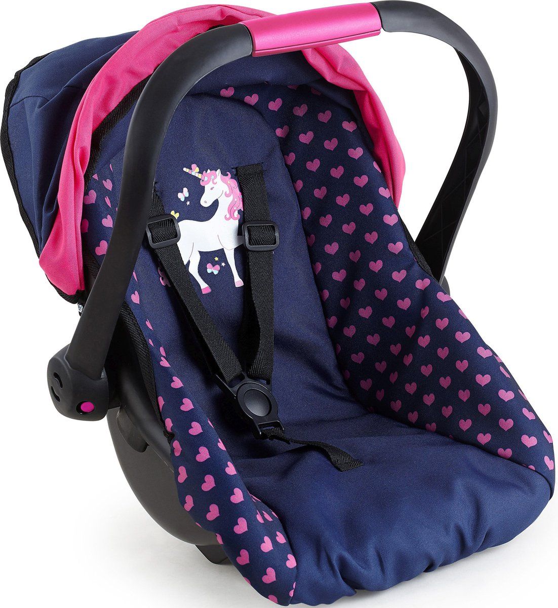 Poppendraagstoel met zonnedak, Eenhoorn decor en hartjes