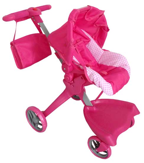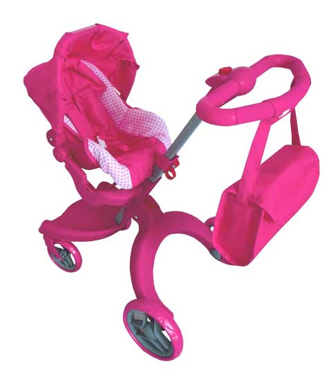 Poppenwagen voor autostoel, draagstoel met luiertas, 4 wielen