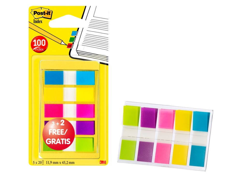 Post-It by 3M Index Smal 12x43 mm 3+2 gratis - 20 tab/kleur
