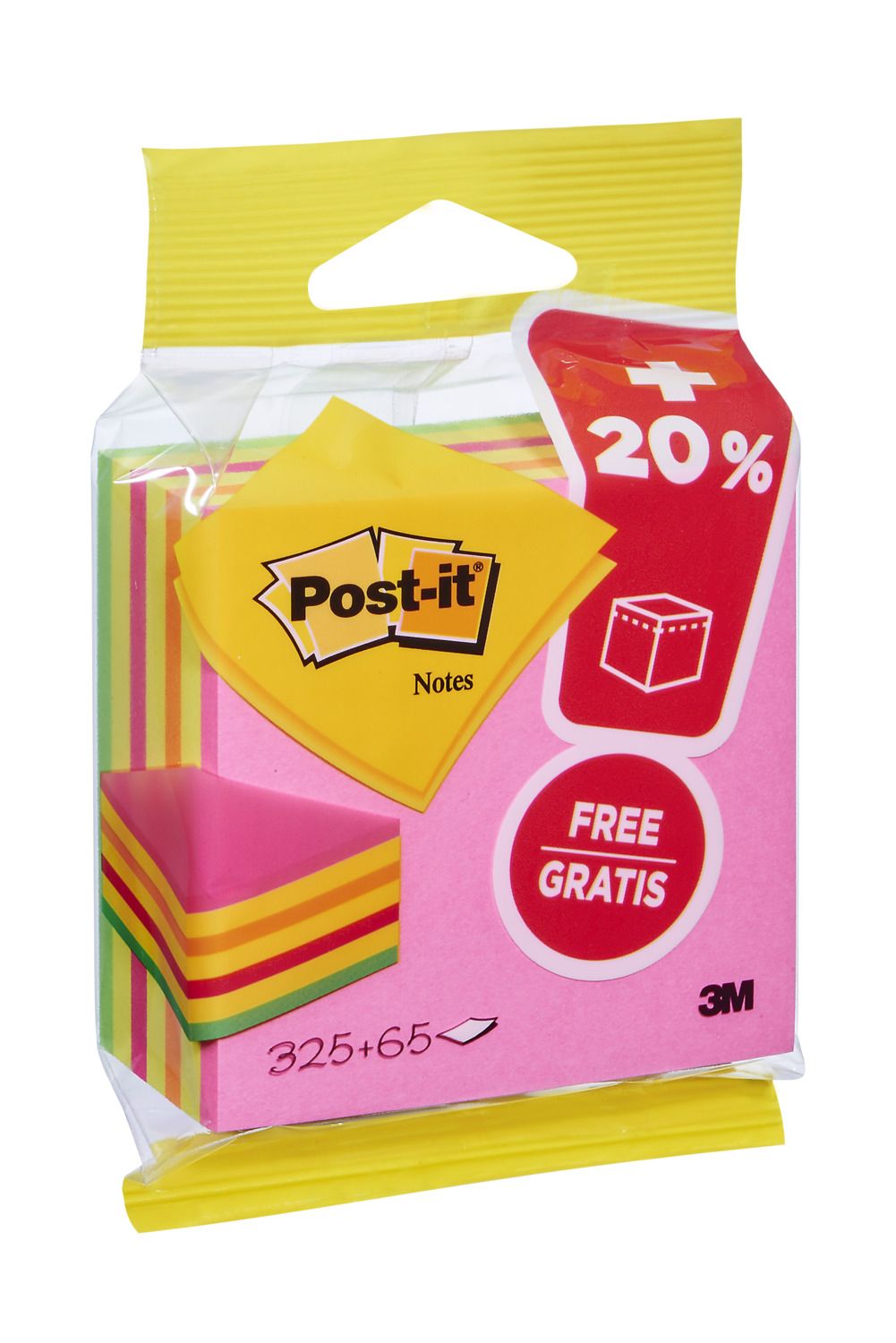 Post-It Notes Kubus Neon 76x76 mm 325 + 65 vel gratis