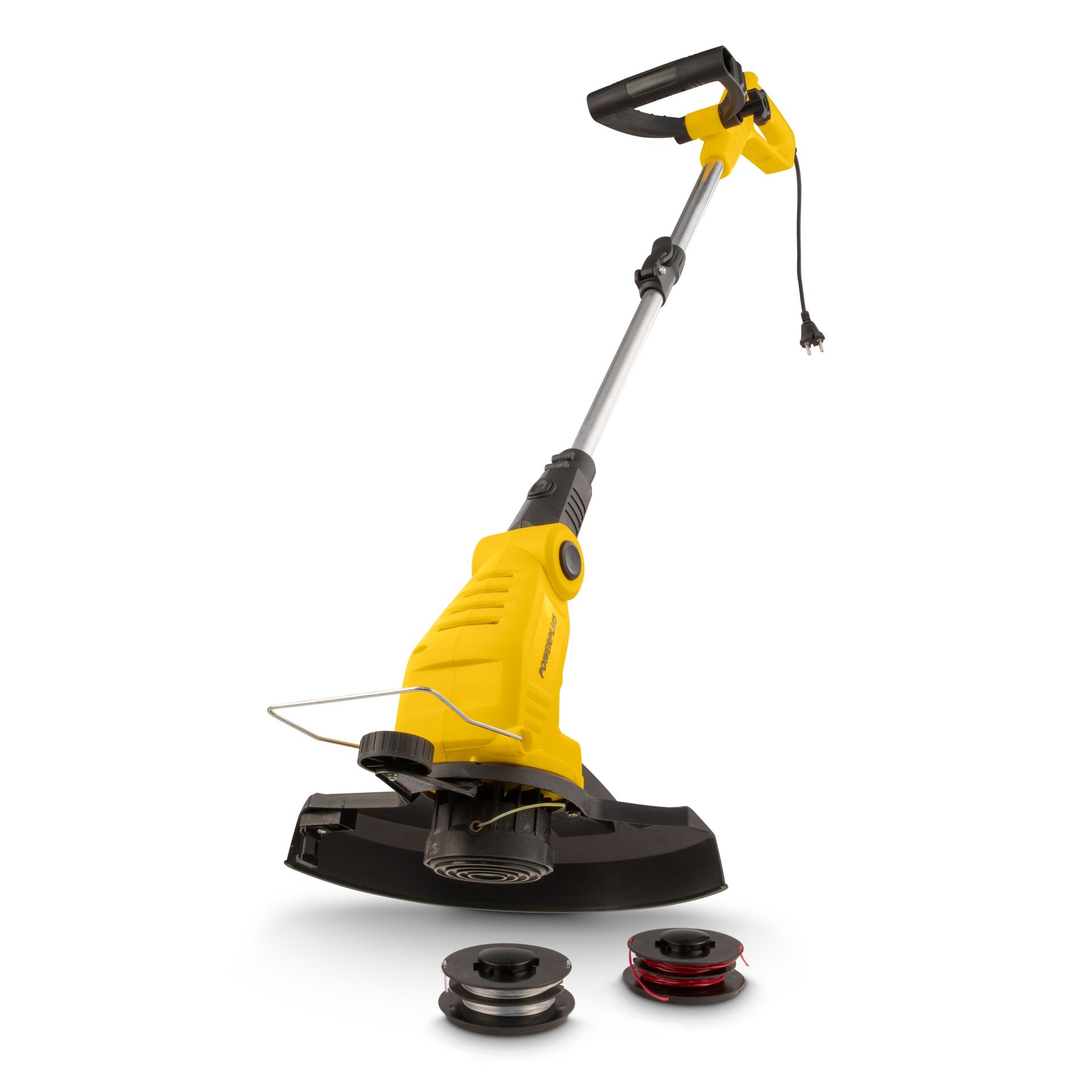 Deze grastrimmer van Powerplus met 450 W-motor zorgt dat je je grasranden steeds netjes kan afwerken en je gazon kan maaien op plekken waar je met een gewone grasmaaier moeilijk bij kan.